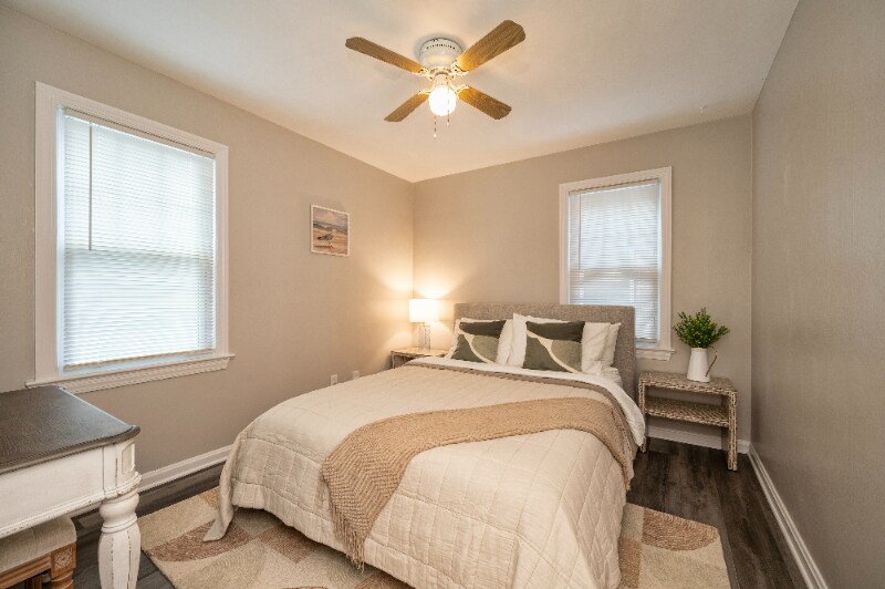 Property Id: 1050353 Welcome to your home away from home in beautiful Cleveland Heights! This freshly renovated home offers a comfortable and peaceful stay in a safe, quiet neighborhood ideal for traveling professionals of all kinds or families in transition. Master Bedroom: KING -size bed Second Bedroom: Queen-size bed Upstairs: Office space + 2 twin beds (great for family stays or visiting colleagues) Fully renovated with brand-new vinyl flooring upstairs and new stairway Freshly painted throughout Completely updated first-floor bathroom all new fixtures and finishes Recently furnished with all new furniture Spacious living and dining areas filled with natural light Fireplace for relaxing evenings Fully equipped kitchen for home-cooked meals Dedicated workspace for remote work or study Front porch and rec room in the basement Basement with washer/dryer Close to grocery stores, restaurants, coffee shops.Night stands in the master bedroom have outlets /usb/usb c. All furnitures and kitchen ware brand new.