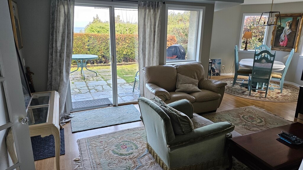 2 bedroom, 1 bath suite, 1140 sq. ft. with ocean view • Available Immediately • Unfurnished {except stools for kitchen Island} • Recently renovated • Ocean View of Piper’s Lagoon • Private entry, • Quiet Road • Close to bus stops • 5 minutes walk to: the ocean/beach; Neck Point; Piper's Lagoon • Gated private back yard with green space and patio area • Fridge and kitchen lights connected to our BACKUP GENERATOR during power outages • BBQ Outlet (Natural Gas) • Gas fireplace • Dishwasher, Fridge, Stove, Microwave • Heated bathroom floor • Bathtub and separate shower • Laundry • Parking Included • Internet included (1GB speed) • Security cameras at parking and on outside walkways • $2175.00 per month, plus utilities • 2 people maximum • No Pets • No Smoking