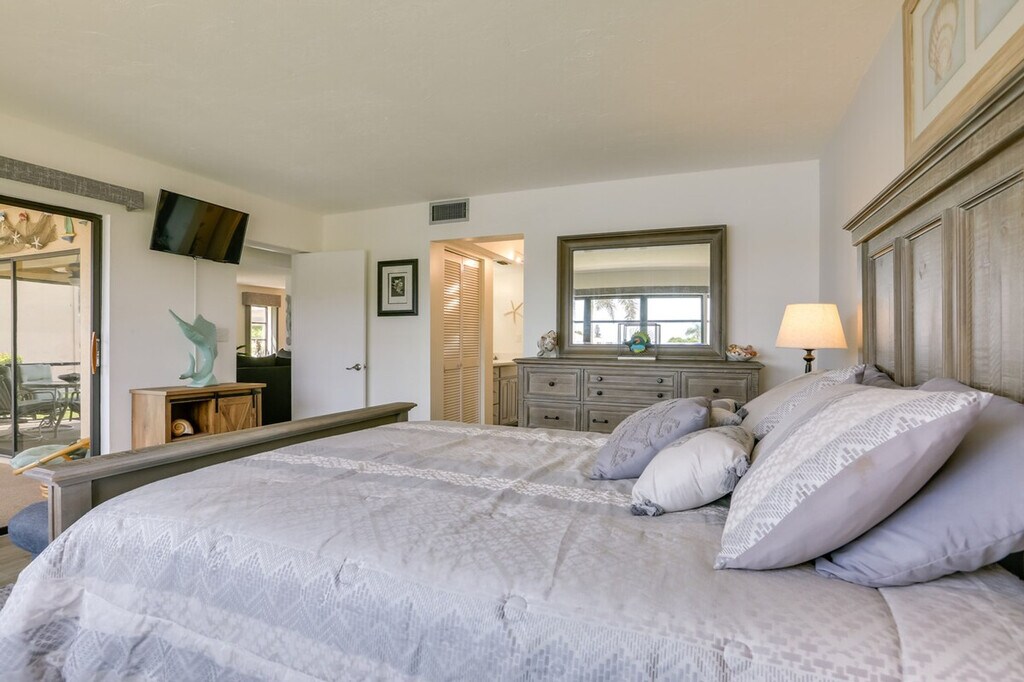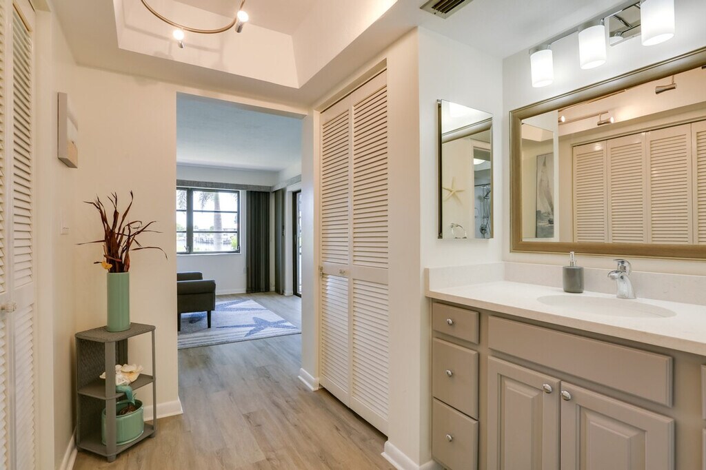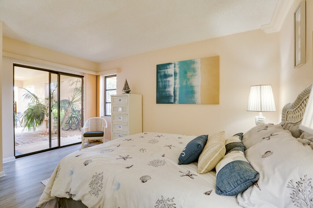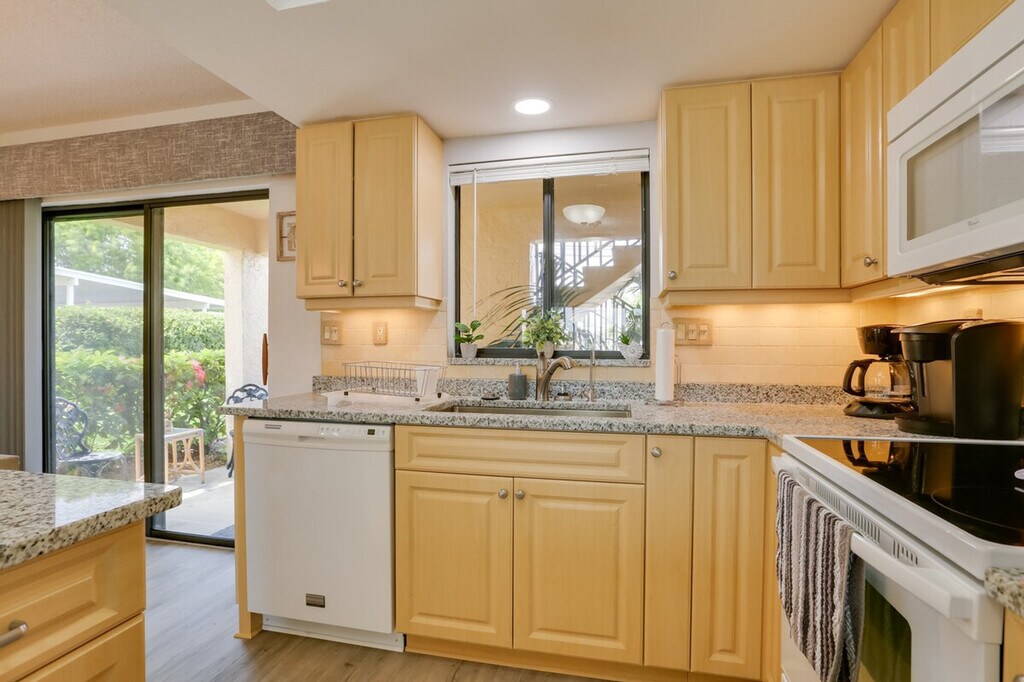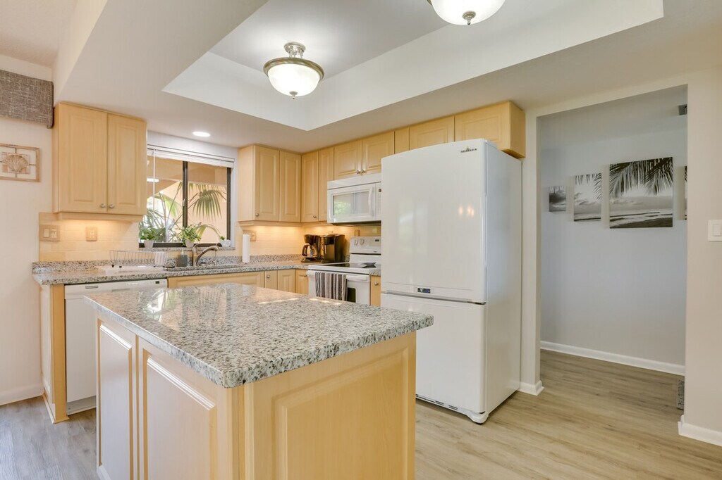 Feel at home in this 2-bedroom, 2-bathroom Cape Coral vacation rental. With step-free access, accessing the condo is a breeze! This fully remodeled apartment features new furniture, sliding glass doors with water views, 2 Smart TVs with cable, a furnished lanai, and outdoor speakers. The kitchen is fully equipped with a blender, Keurig coffee maker, coffee grinder, Crockpot, kitchen knives, flatware and utensils, microwave, toaster, dishwasher, stovetop/oven, pots and pans, and refrigerator. Also provided are 2 bicycles, beach towels, pool toys, and fishing poles. Guests have access to the entire property via keyless entry. Parking is available in the carport for 1 vehicle and in the driveway for 2 vehicles. RVs or trailers are not permitted. Whether you want to take a dip in the community pool or enjoy the water views from the screened-in lanai, this apartment is the place for you. Take the bikes for a spin through the sunny neighborhood or pack up the beach towels for a day at Fort Meyers or one of the many nearby beaches. Smoking, pets, events, parties, and large gatherings are not allowed. Guests must be at least 25 years old to book. Additional fees and taxes may apply, and a photo ID may be required upon check-in. [SI]