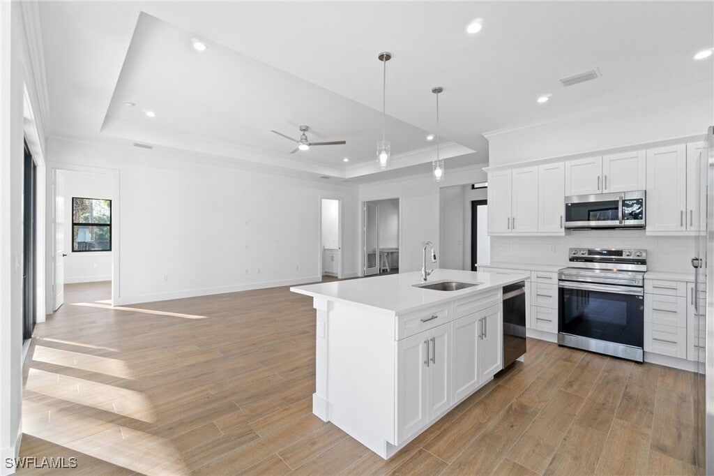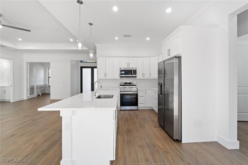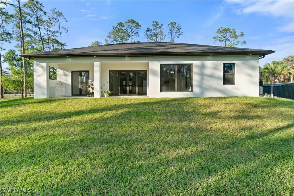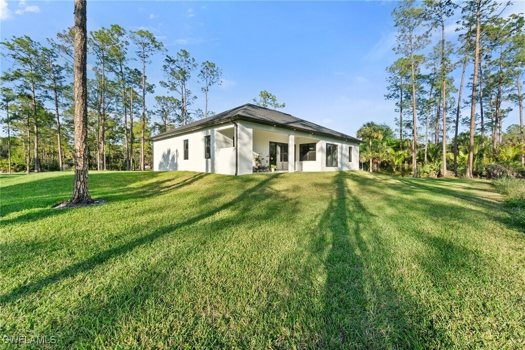 PRIME LOCATION!!! Take a look at this Golden Gate Estates Gem,brand new construction,ready to move in! This home is situated on a 2.5 acre rare UPLAND LOT,and features 3 bedrooms plus a den,3 bathrooms and a 2 car garage. Upgrades include wood plank porcelain tile throughout,crown molding,quartz countertops,stainless steel appliances,and lovely solid wood cabinets! The living room and master suite will boast tray ceilings and the master wing featuring an oversized bedroom,2 spacious closets,double vanity,and a beautiful glass door enclosed shower. The outside of the home will not disappoint,with its summer kitchen ready to host friends and family,impact resistant doors and windows,to a beautiful landscape with 2.5 acres.