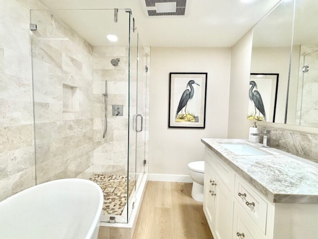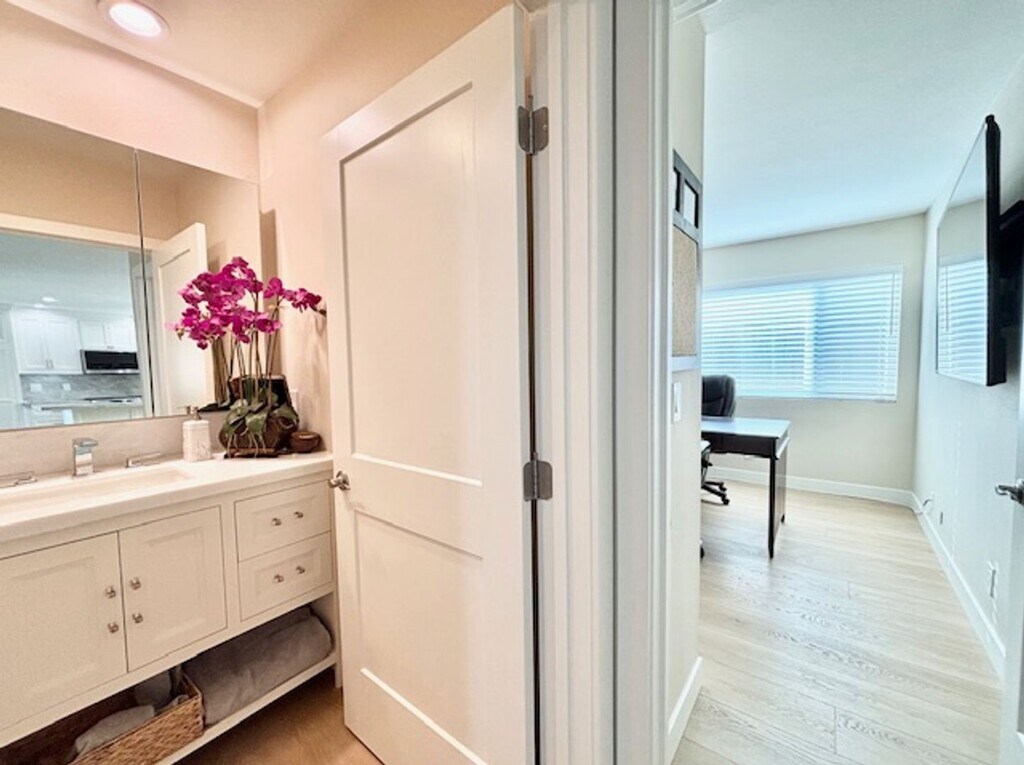 Apply now: Experience luxury living in this newly renovated 3-bedroom, 2-bathroom, 2-story home located in the desirable Hollywood Beach community of Oxnard, CA! Just steps from the beach, this unfurnished home is available for a year lease. Upon entering, you’ll find the first level featuring an office space, two spacious bedrooms, and a glamorous bathroom. The primary bedroom boasts a generous walk-in closet, while the second bedroom showcases stunning mirrored sliding closet doors that enhance the sense of space. The serene bathroom is a luxurious retreat, complete with a beautiful tub, walk-in shower, and a spacious vanity adorned with high-end finishes. The main level, located upstairs, offers a large and sunny living room with a cozy fireplace. The connecting kitchen is a chef's dream, featuring all-white cabinets beautifully complemented by eye-catching countertops, along with new stainless steel appliances and under-cabinet lighting. Access the patio and rooftop deck through the dining room, where you can enjoy ocean breezes and picturesque water views of the marina—perfect for relaxation or entertaining. This level also includes an additional bedroom and bathroom, both featuring the same luxurious finishes as the first-floor bathroom. The attached two-car garage and driveway provide ample parking for up to four vehicles, with additional street parking available. Washer and gas dryer hookups are conveniently located in the garage. Small fenced backyard. The HOA covers water, sewer, and trash, while tenants are responsible for gas and electric. Don’t miss out on this incredible opportunity to live in a stunning beachside home!