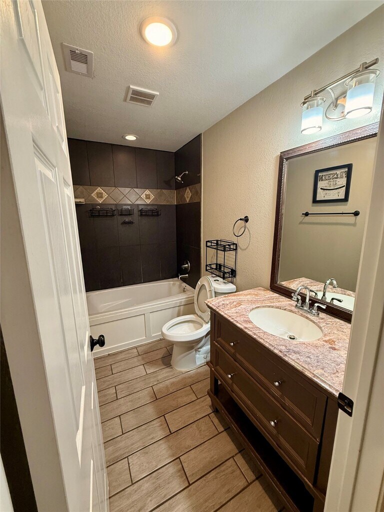 Move-in ready 2-bedroom,1-bath home with modern updates. Step inside to an open floor plan with tile flooring throughout. The kitchen offers granite countertops,a stylish backsplash,breakfast bar,and recessed lighting. Both bedrooms are spacious with generous closet space,while the bathroom features a jetted tub/shower combo. Outside,the driveway accommodates up to 4 cars,and the fully fenced backyard includes a covered patio and grassy area—perfect for pets. Conveniently located between Kemah and Galveston,you’ll be minutes from fishing,dining,and local favorites like Gilhooley’s and The Rusty Hook,with easy access to Highway 146. This home is ready for immediate move-in—schedule your viewing today! MLS# 84414479