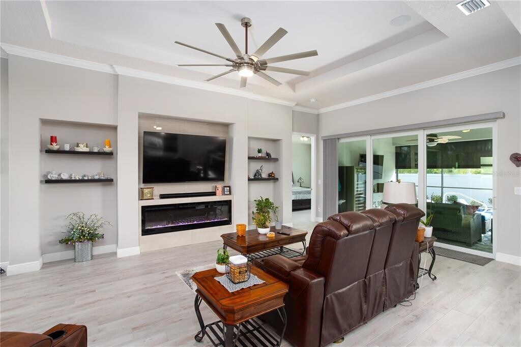 Elegant,beautifully landscaped 2-Bedroom,2-bathroom Home with Office,Private Pool,& Golf Course Community Living. Welcome to 3727 Wild Blossom Place – a beautifully appointed home located in the sought-after gated community of Cypress Glen @ River Wilderness. This 2-bedroom,2-bath home with a dedicated home office and a spacious 3-car garage offers the perfect blend of style and function. Step inside to an inviting open-concept layout with abundant natural light and tasteful finishes throughout. The kitchen is a chef’s delight with stainless steel appliances,solid-surface countertops,and a breakfast bar that opens to the dining and living spaces—ideal for gatherings and everyday comfort. The primary suite offers a peaceful retreat with a large walk-in closet and a private en-suite bathroom featuring dual vanities and a walk-in shower. A second bedroom,full guest bath,and versatile office provide ample space for family,guests,or working from home. Step outside to your own backyard oasis—complete with a private pool and a covered lanai,perfect for Florida living year-round. Located in a gated golf course community,residents enjoy access to a resort-style clubhouse,community pool,and beautifully maintained grounds. All just minutes from shopping,dining,and the natural beauty of Florida’s Gulf Coast. This home also offers,ceiling fans in all rooms,plantation shutters throughout the home,custom built-in shelving,marble wall in great room,new interior lighting,Florida basement with home safe off the garage,garage is kept cool with its own AC unit,pull-down stairs in garage for easy access to storge above,home filtration system and water softener,new front glass doors,outdoor kitchen,remote controlled screens on lanai,and to top it off,built-in surround sound speakers throughout the home and lanai with home stereo system! Don’t miss the chance to call 3727 Wild Blossom Place your home—where every day feels like a getaway.
