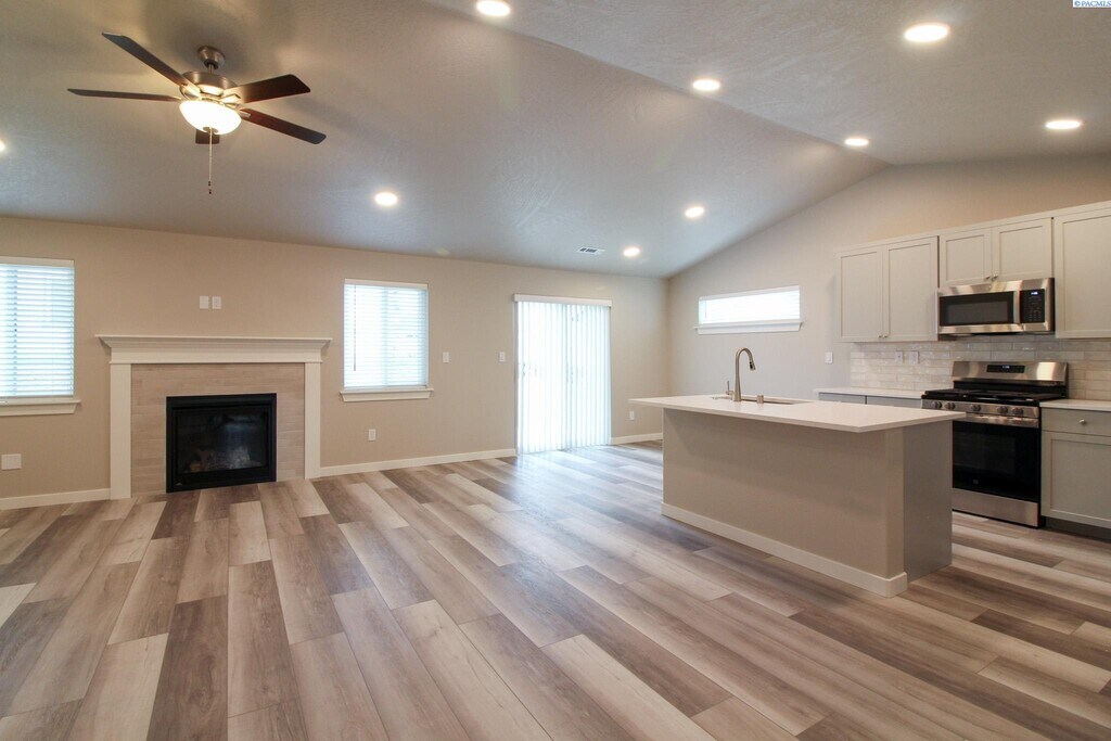 We do not accept 3rd party applications or viewing requests. 3 bed, 2 bath house, 1408 sqft Richland Home, located in Goose Ridge, close to freeway & Queensgate shopping, new Costco. Interior: * Completely brand new construction * Bright & open main living space * Hard surface flooring in the main living spaces * Stainless steel appliances in the kitchen, open shelving, gas range and eat-at bar * Primary bedroom has a double walk-in closet, and attached bath with a dual vanity Exterior: * 2-car garage * Fully fenced yard - installed after photos were taken Additional Lease Information: * 6 month lease term to start, annual renewals * Dog friendly upon approval & fee. Deposit & Fees Include: $1,595 Refundable Deposit $315 Inspection Fee $190 Carpet Care Fee (used at move out)