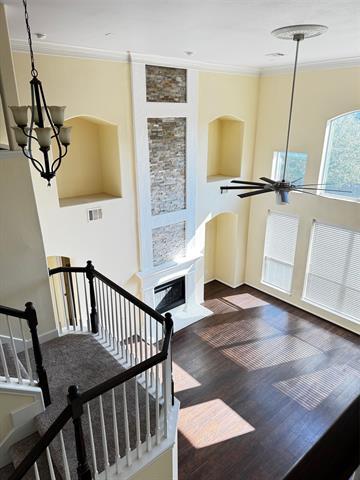 Stunning home w designer finishes within walking distance to school, playground, community pool & shopping. Completely remodeled & upgraded open floor plan with extensive wood flooring, decorative stoned walls, crown molding & decorative light fixtures through out. Gourmet kitchen with corian counter tops, island, stainless steel appliances & eat in breakfast area. Huge primary suite with bay windows, tray ceiling, his & hers closets & jetted tub