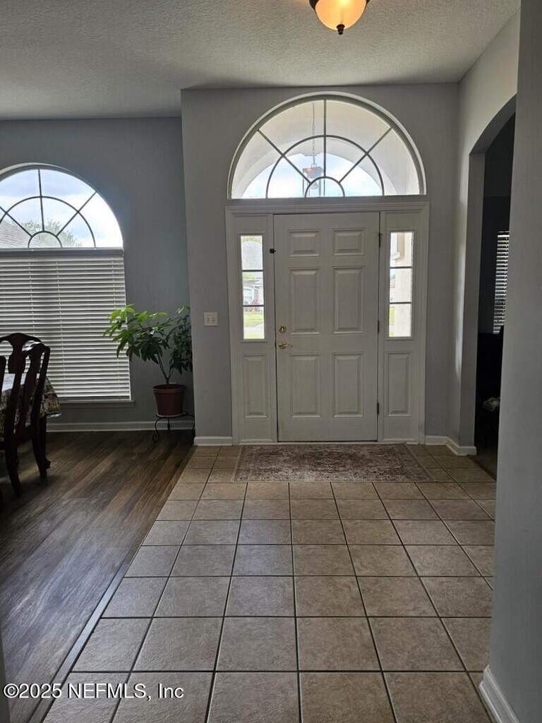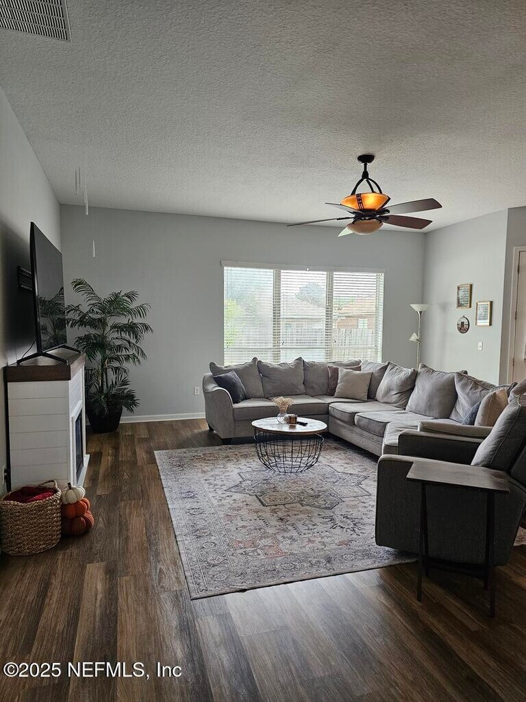 Beautiful 4 Bedroom,2.5 Bath located in the heart of the Lake Asbury area! Welcome home to this spacious 4 bedroom,2.5 bath beauty offering 2,467 sq. ft. of comfortable living space in a quiet,family-friendly neighborhood close to Ronnie Van Zant Park. Luxury vinyl flooring throughout the main living areas and a split floor plan designed for both privacy and functionality. The home features a separate formal living room,perfect for entertaining or a home office. The primary suite is a true retreat,featuring his and her walk-in closets,a garden tub,and plenty of space to unwind. The second bedroom includes a fun chalkboard wall,perfect for creative little minds. Enjoy cooking and gathering in the spacious kitchen,then step outside to a large fenced-in backyard with a covered patio ideal for relaxing evenings or weekend barbecues. **Fireplace does not convey Newer roof - 2019 and a new A/C unit in 2023. Close to schools,shopping,Navy base. Call now! MLS# 2115497