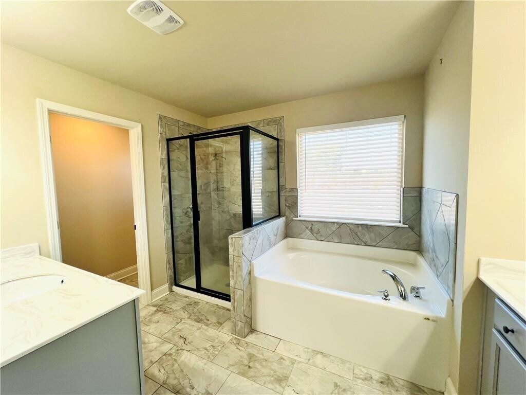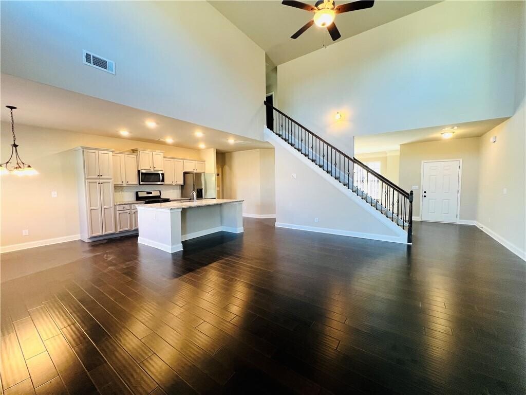 Welcome to this beautiful home. You will enjoy the well-maintained home features,an open,desirable floor plan with 4 spacious bedrooms,3 full Baths,it includes a guest suite on the main floor that can also serve as an office. The main level boasts hardwood floors,a high-ceiling family room,and a formal dining room. The gorgeous kitchen includes a large center island with views of the family room,granite countertops,a tile backsplash,stainless steel appliances,and an iron rail staircase. Upstairs,the master suite bathroom offers his and her vanities,a tile shower surround,and tile flooring. You'll find another two spacious secondary rooms with large walk-in closets. The beautiful backyard provides ample space for pets and children to play,with a covered patio perfect for entertaining or family gatherings. 2 car garage. Great location,close to shopping and dining. Minutes to Sam’s,Kroger,Target,Best Buy. Landlord provides washer,dryer and refrigerator. Pets welcome. Move-in ready! MLS ID 7718615
