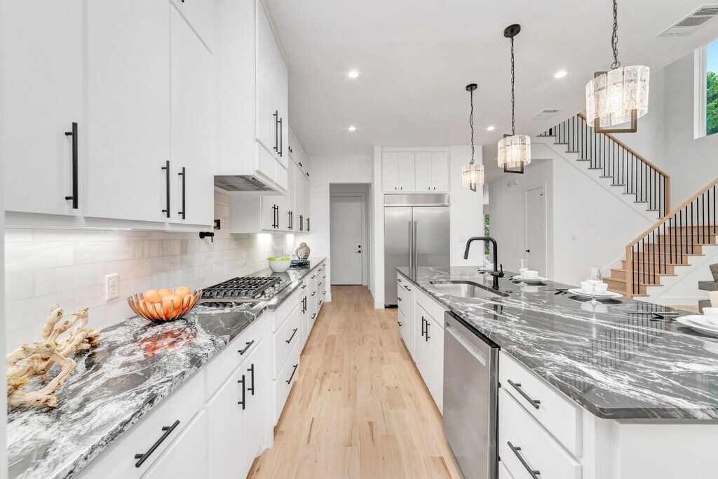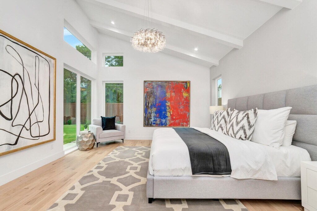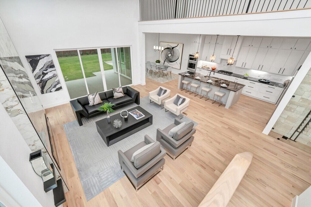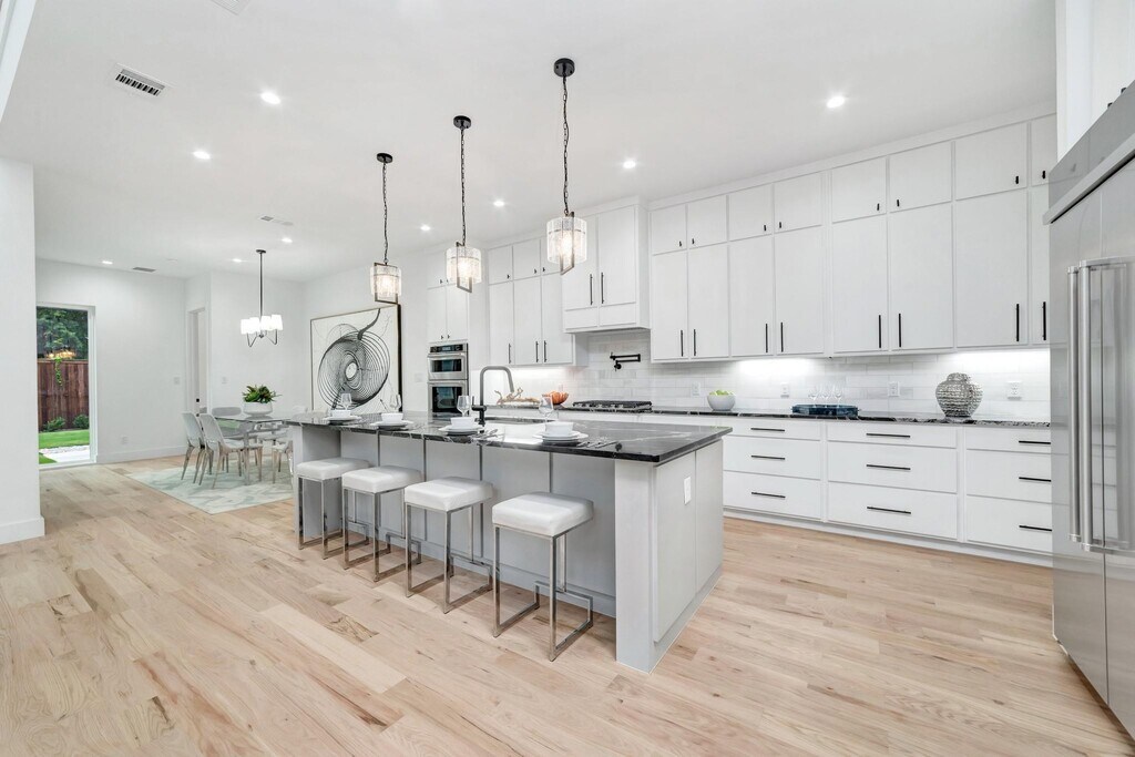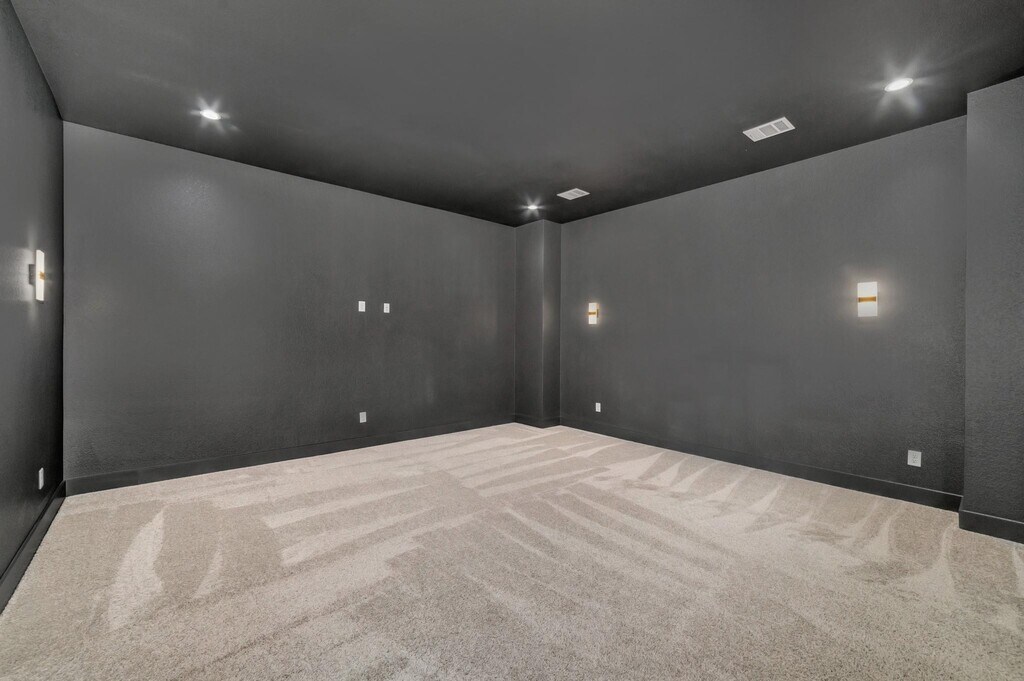 Step into this beautifully designed modern home where style meets functionality. With 4,159 sq ft, this residence features 5 full bedrooms, 5 full bathrooms, and standout upgrades throughout. You’re welcomed by a dramatic 21-foot ceiling in the living room and entry, paired with a custom 8-foot iron front door and matching 8-foot interior doors throughout. The open-concept layout flows effortlessly across solid oak hardwood floors, connecting luxury with everyday living. The kitchen is a showstopper—featuring sleek, modern cabinetry, a quartz oversized island, and top-tier KitchenAid appliances, perfect for both cooking and entertaining. Two sliding glass doors lead to an extended covered patio and private backyard with a tall 8-foot cedar fence, ideal for relaxing or hosting. Enjoy added living space with a movie theater, game room, and a second-floor balcony for fresh-air lounging. A private office on the first floor with a walk-in closet and full bathroom provides flexible use as a guest suite. This home is also equipped with a full security system, cameras, and alarm, offering peace of mind and modern convenience. Luxury, space, and smart layout—all wrapped into one stunning home ready for move-in. Liiana Eritcian Eritcian Luxury Realty LLC