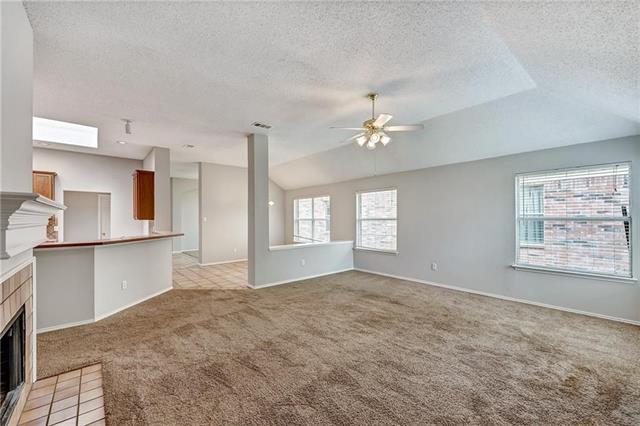 Tidy curb appeal flanked by a mature shade tree leads up to a nicely laid floor plan within this red brick home. Two living areas plus a den are complimented by a formal dining room and eat-in kitchen with breakfast nook. The kitchen features black appliances (including gas stove), small secretary's nook, and tile backsplash. Master suite features two closets: one in-room and a second in the bathroom with dual vanities, shower, and tub. One block from Sunset Hills North Park; short drive to highly-rated public schools and shopping and dining at Alliance Town Center.