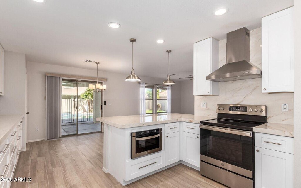 This beautifully remodeled 5 bed/2.5 bath home with a pool has only been lived in for 5 months since the remodel. Still feels like new. Includes landscape & pool service. Open concept living space featuring sleek tile floors that flow throughout the downstairs. The kitchen,is a stunning showcase with high end porcelain countertops,and stainless steel appliances including french door refrigerator,and microwave drawer. One bedroom down. Plush new carpeting upstairs. Luxurious primary bath with huge walk in shower. Built-in storage space in garage. Soft water system. Newer washer & dryer. Step out back to your extended covered patio,spacious backyard and private pool perfect for relaxation and entertaining. Easy access to the 202 freeway and minutes from San Tan Village. INCENTIVE: FREE MONTH OF RENT for a 16 month lease starting before 1/1/2026.