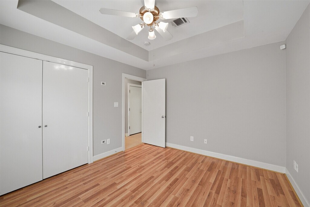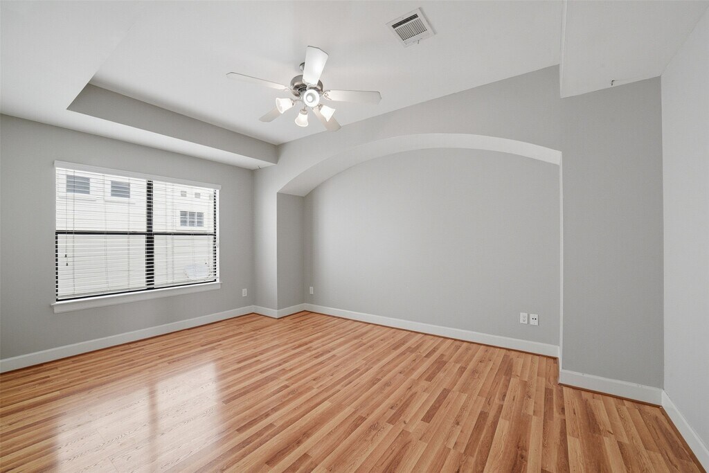 Great Location in Gated Community. Easy access to 610 Loop. Just minutes from NRG Stadium,Texas Medical Center,and the Galleria. This Modern Contemporary Style home is located on the Corner Lot. The first floor offers 2 bedrooms,full bath,and dedicated office space. The backyard patio is accessed through a bedroom. Upstairs you will find a large living area with hardwood-style floors,a half bath,kitchen with stainless steel appliances,a tile backsplash,and generously sized primary suite. The primary bedroom has jetted tub,separate shower,and large walk-in closet with built-ins and ample storge. All appliances are included. Come see this conveniently located home ideal for professionals or families seeking modern comfort. MLS# 89566444