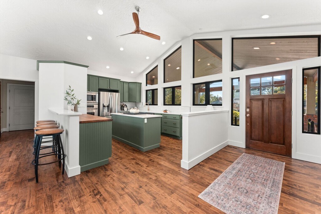 Step into this beautifully updated mid-century home perched on Boise’s West Bench. With 5 bedrooms, 3 full baths, and nearly 3,780 sq ft of living space, this home marries timeless charm with modern upgrades. Vaulted ceilings and expansive floor-to-ceiling windows frame sweeping views of downtown Boise and the foothills. The main level features a luxurious primary suite, an open-concept great room, and a chef’s kitchen complete with granite counters, pantry, and stainless steel appliances. Downstairs, enjoy a versatile bonus room with a kitchenette, two additional bedrooms, and a full bath — perfect for guests, multigenerational living, or an income suite. Outdoors, a fully fenced yard, landscaped gardens, and a Rachio-controlled sprinkler system make upkeep effortless. The property also includes a three-car garage with workshop space and a covered horseshoe drive for easy access. Located just minutes from parks, schools, and downtown, this home delivers both privacy and convenience.