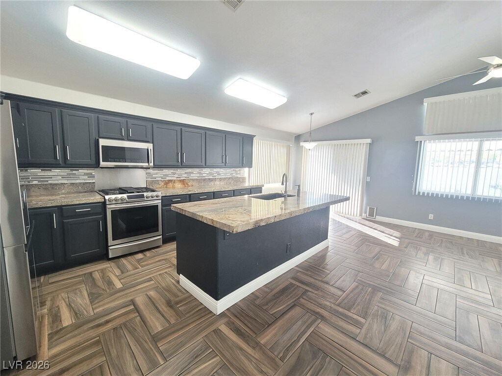 Nicely upgraded single-story home located in Spring Valley. This residence features 3 bedrooms and 2 full bathrooms, with a separate living room and dining area. The kitchen offers stainless steel appliances, granite countertops, and a stylish backsplash. Tile flooring throughout the entire home—no carpet. Bathrooms are upgraded with marble countertops and tile surrounds. Enjoy vaulted ceilings and ceiling fans in every room for added comfort. A Nevada room/sunroom and covered patio open to a large backyard ideal for entertaining, with no rear neighbors for added privacy. Great location, close to Walmart, Sam's Club, grocery, shopping, and dining. Move-in ready. Send e-mail or text for any questions. DON'T call the no. Thank you.