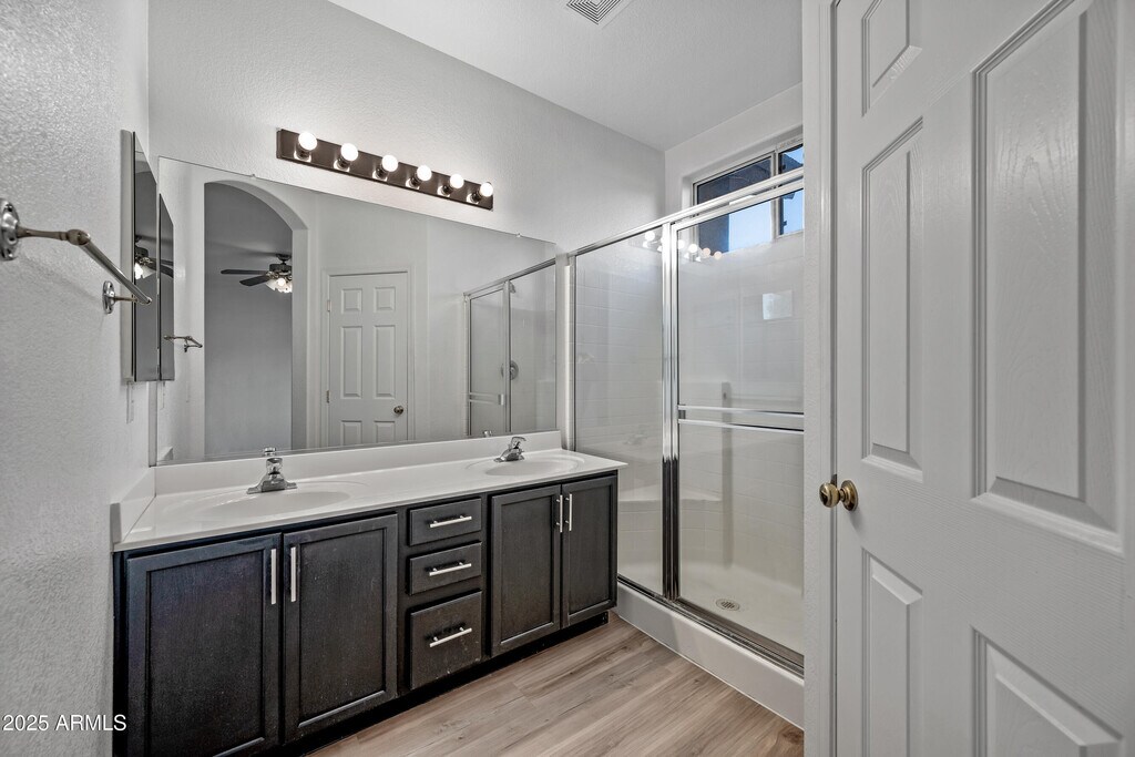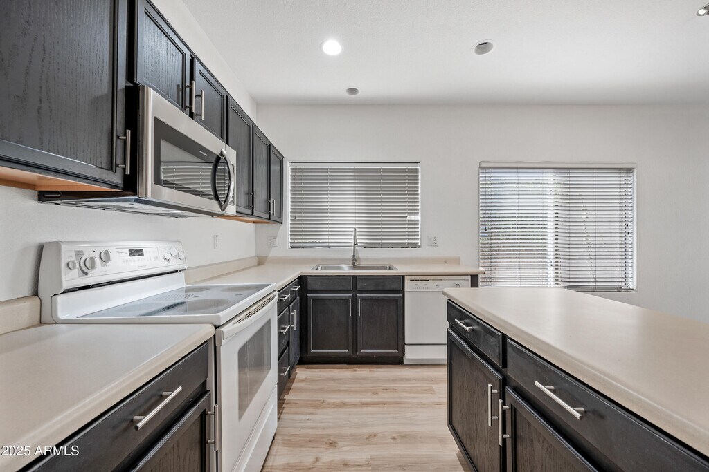 Beautifully updated home with dark cabinets featuring stainless steel hardware,and light tan hard surface flooring throughout. Desirable floorplan with formal living room plus family room and open kitchen at the back of the 3 bedroom home. This home is located in the Palm Valley area with all the advantages of the A+ schools,Wigwam Resort,golf courses,YMCA,and small-town-type community activities held throughout the year. Close to Luke Air Force Base. Convenient to Litchfield Schools - Litchfield Elementary,Western Sky,and Millennium. Walking path and no through roads in this small enclave of the Palm Valley area.