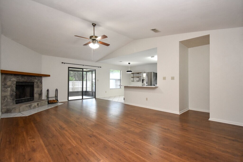 Nestled near the Mile Run community is this 3B/2B home with approx. 1323 sq ft. Recently remodeled kitchen includes stainless steel refrigerator, double range oven, dishwasher and disposal. Open concept living space that features a wood burning fireplace. Vinyl plank flooring throughout except where ceramic tile is located in kitchen and baths. Spacious screen porch overlooks into the large fenced back yard where you will find a private door access directly to the community amenities. Mile Run occupants have access to many amenities such as a large community pool, playgrounds, basketball, racquetball, and tennis courts, and a community clubhouse that is available for reservation upon request from the association. Upon approval, any decision not to execute the lease will result in a forfeiture of the “Holding Fee” which is equal to one month’s rent plus the forfeiture of the Administration Fee of $250 $1,995/MO & $1,995 S/D