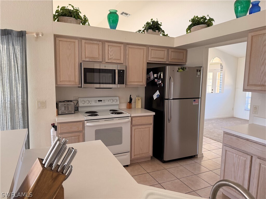 Bright,clean,and well maintained single family pool home offered turnkey furnished. Located in SW Cape Coral on a corner lot,this home has NEW carpet and freshly cleaned tile in the common areas and freshly steam-cleaned carpet in the 3 spacious bedrooms. All sliding glass doors have had a fresh tune up. Bonus room perfect for gaming or a computer area. 2 car garage with storage and dedicated laundry room. The pool area is cafe style,with screened enclosure. Well equipped kitchen with most everything you'll need. Lounge in the sun and enjoy your private,heated pool. Affordable and convenient location!