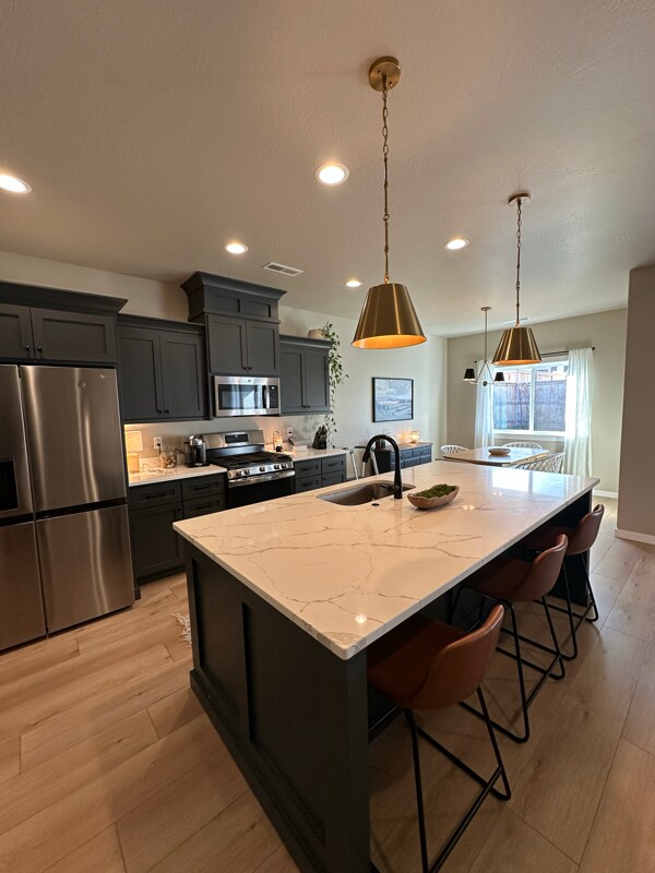 Property Id: 2427955 Welcome to Casa Noir! This newly built property was constructed by Mahar Builders. The sleek black on black exterior gives a unique and modern look to the farmhouse style of this single story home. Casa Noir has a 2 car garage, attic storage for all your holiday totes, a fenced yard for your human or fur babes, and easy to keep up landscaping. The primary bedroom has a double vanity en-suite, a walk in closet, private bathroom, and sit or stand shower. The two guest bedrooms are nicely sized, one with a walk in closet and the other with a standard closet and two large beautiful windows over looking the farmlands across the way. The gas stove kitchen has an open concept to the dining area and living room which hosts a gas fireplace. From the kitchen there’s a walk in pantry and laundry room with a washer and dryer. This rental is pet friendly upon approval. We do not use a property manager.