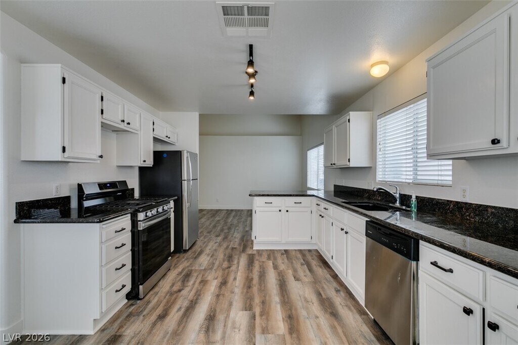 NO HOA!!! Single story home. Located in NLV. New flooring, new paint, front yard updated. 3 bedrooms, 2 full baths. No carpet. All appliances stay with property. Ready for you to9 move in upon approved.
