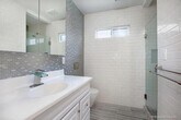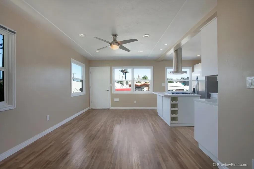 Experience modern living in this beautifully updated 2-bedroom, 1-bath home featuring high-end finishes and energy-efficient upgrades. The open-concept living area is filled with natural light and includes recessed lighting, a ceiling fan, and wood-look tile flooring throughout. The contemporary kitchen is designed for both style and functionality, offering stainless steel appliances, quartz countertops, and a designer backsplash. Both bedrooms are spacious, equipped with ceiling fans and dual-pane windows to ensure year-round comfort. Additional highlights include solar panels for reduced energy costs, an in-home washer and dryer, and a private fenced yard-perfect for relaxing or entertaining. Conveniently located near major freeways, shopping, and dining, this home offers the perfect blend of comfort, efficiency, and modern style.