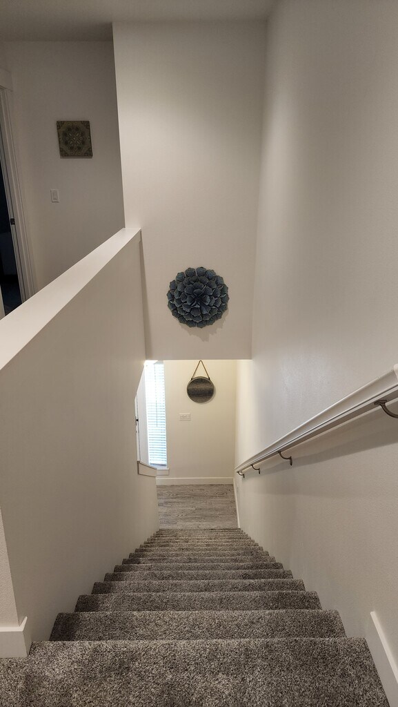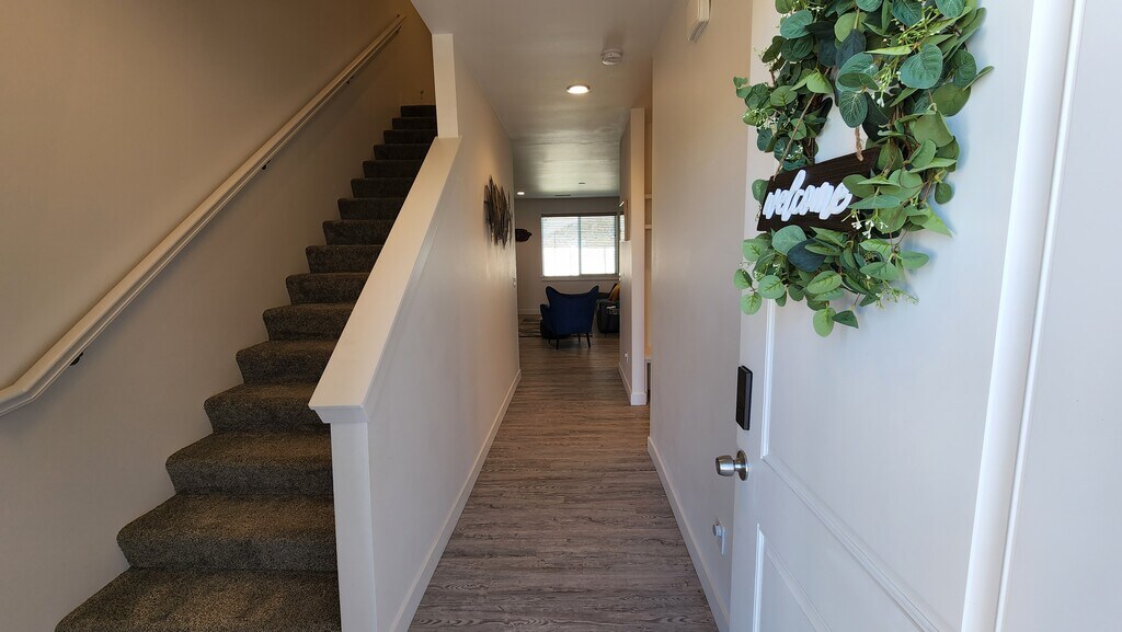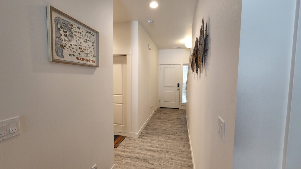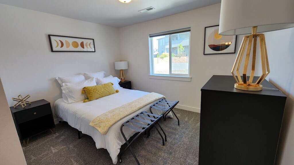 Fully furnished, modern, 3 bedroom, 2.5 bathroom townhouse in West Richland built in 2020. Minutes from Benton City wineries, 12 minutes to PNNL, 25 minutes to Columbia Generating Station, 30 minutes to Hanford Site. Open floor plan concept for the main floor with 3 bedrooms upstairs. The main floor has a 65" Samsung Smart TV on an entertainment center with a built-in fireplace and a reclining couch. There is an additional 55" Amazon Fire TV on a rolling cart that can be moved anywhere throughout the house. The kitchen is well equipped with all the amenities of home and a large pantry. The master suite is spacious with a Nectar king size bed, large walk-in closet, private masterbath, and gorgeous views of Rattlesnake and Red Mountain, including stunning sunsets. The guest bedrooms are cozy and comfortable--queen size in one bedroom and twin over full bunk beds in the other. The backyard is fenced for privacy and pets with a furnished patio for your enjoyment. Includes all utilities (w/s/g, internet, gas) and up to a $150 allowance for electricity. Available as a month-to-month term for rental. Please submit the form on this page or contact Karina Ellis at to learn more. This property is managed by a responsible landlord using Avail landlord software. Refer to the list below for included amenities: 2-car garage Air conditioning Backyard Baking sheets Bathtub Bed linens Blender Carbon monoxide alarm Ceiling fan Clothing storage Coffee maker Conditioner Dining table Dishes and silverware Dishwasher Dryer Extra pillows and blankets Fire extinguisher First aid kit Freezer Hair dryer Hangers Heating High-speed internet Hot water Hot water kettle Indoor fireplace Iron Kitchen Linens and towels Microwave Outdoor furniture Oven Patio Refrigerator Room-darkening shades Shampoo Shower gel Smart TV Smoke alarm Sound system Stove Toaster Washer Wine glasses