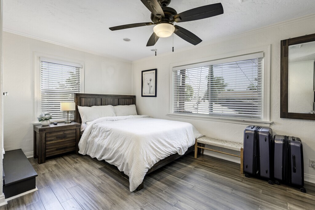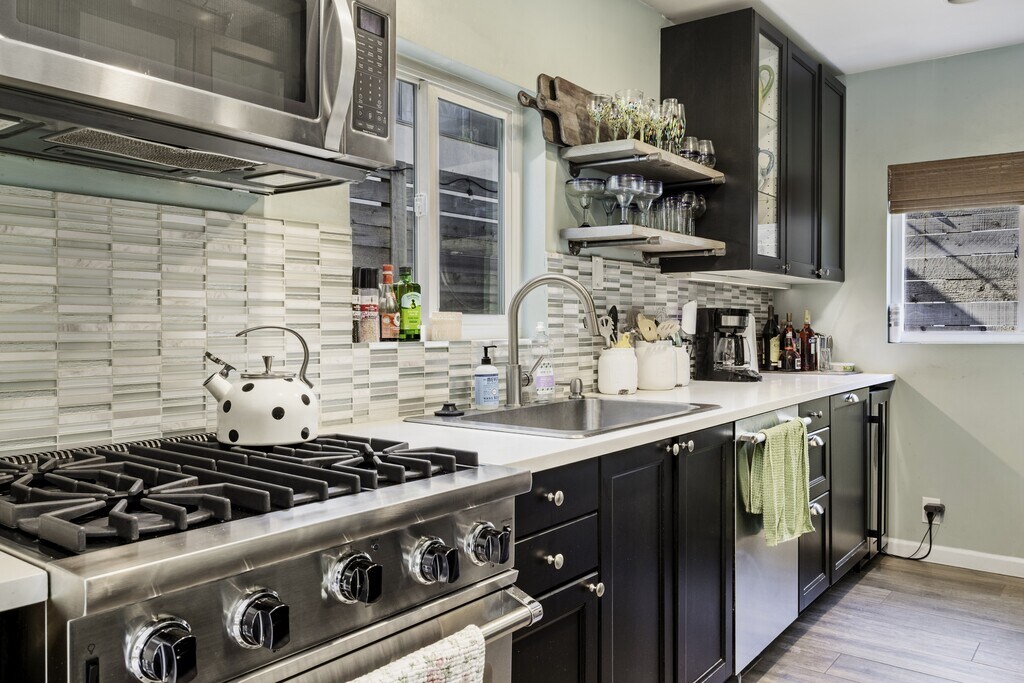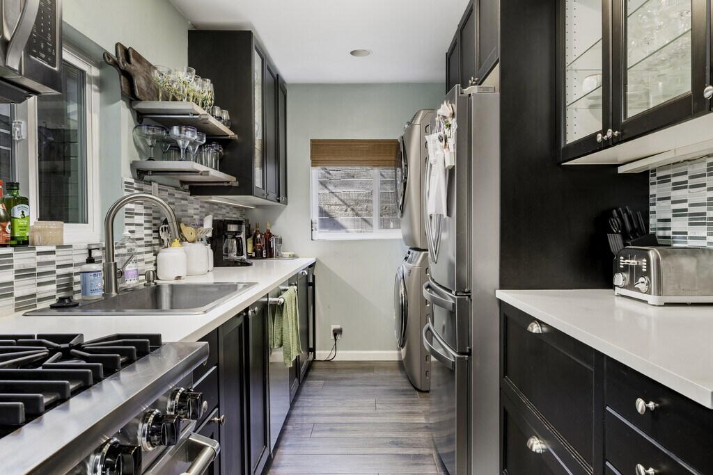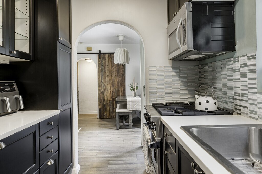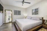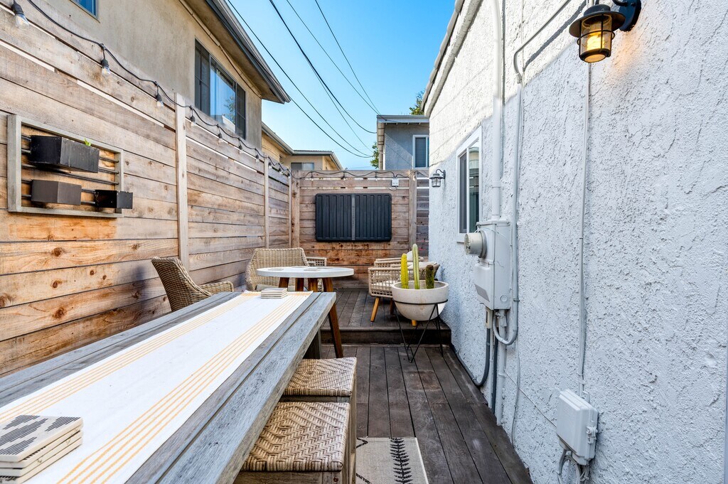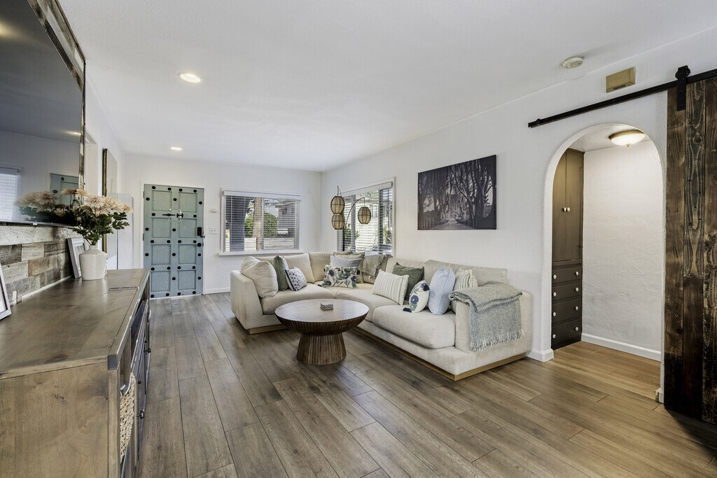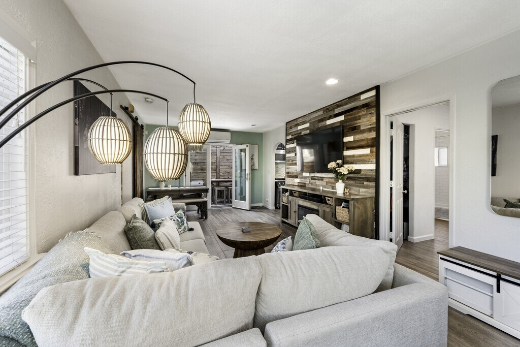 This beautifully upgraded 2-bedroom, 1-bath home blends charm, style, and smart design into one seriously amazing space. Thoughtfully renovated with modern finishes and clean lines, the home feels fresh, bright, and inviting from the moment you walk in. The open living area flows effortlessly into a sleek, updated kitchen featuring contemporary cabinetry, stylish fixtures, and upgraded appliances (including in house washer/dryer) — perfect for everyday living and entertaining alike. Both bedrooms are well-proportioned with great natural light and a cozy, comfortable vibe. The bathroom has been tastefully remodeled with modern touches and quality finishes. What truly sets this home apart are the outdoor spaces. Enjoy a very private front patio. The secluded back area offers additional space to relax and unwind in your own quiet retreat. This upgraded home offers privacy, style, and functionality all in one unique package. Perfect for those who appreciate thoughtful design and indoor-outdoor living. The property is pet friendly for additional "pet fee"