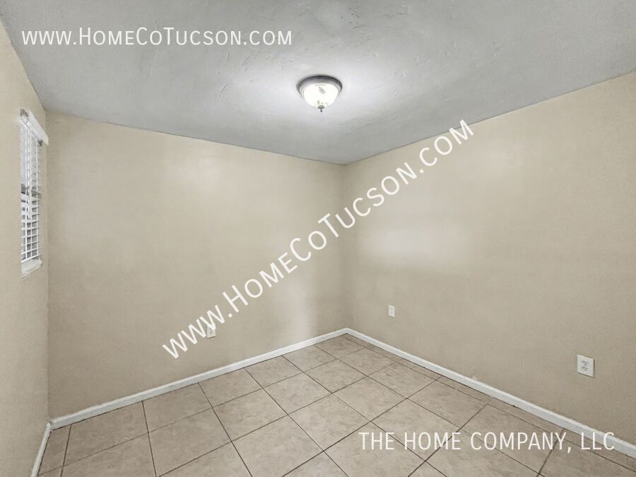 Discover this spacious four-bedroom, two-bath block home on a large corner lot near Davis-Monthan Air Force Base and just down the street from Escalante Park. This one-story property features a fenced yard, mature trees, and a generous carport. Inside, you’ll find an updated kitchen, a comfortable living room, a dining area, and no carpet throughout. The primary bedroom includes an updated ensuite bath, offering a private and modern retreat. A large screened-in porch provides additional living space, while the oversized laundry room, dedicated wood-shop area, and large storage shed offer exceptional functionality. This home has plenty of room to spread out both indoors and out, with the convenience of nearby parks and easy access to everything the area has to offer. VIDEO TOUR: Explore this property with our comprehensive video tour to get a closer look at every detail before scheduling an in-person visit. **Walking Tour** **Virtual Tour** HOA: NO HOA UTILITIES: PAID BY THE TENANT To review our rental qualifications, apply, view additional video tours, or schedule a showing, please visit: **Website: ** For questions during business hours, please contact us: Text: Email: QUALIFYING REQUIREMENTS: Email for a full disclosure of fees and to review a blank lease document. Experience the difference with The Home Company! Visit to schedule a showing, apply, view additional media for each available property, and review detailed qualifying requirements and information. Proudly setting the standard for property management in Arizona, The Home Company is dedicated to improving the rental experience for both tenants and landlords. As an Equal Opportunity Housing provider, we are committed to fairness and transparency in every interaction. All our agents are licensed Real Estate Professionals, delivering knowledgeable support and exceptional service. Please note, The Home Company, LLC exclusively represents the Landlord in all property-related matters. As the Landlord’s authorized Agent, our responsibility is to act in their best interests throughout the rental process. Call: (Leasing Department, Monday–Friday, 10 AM–4 PM) Corner Lot Covered Patio Four Bedrooms Large Yard Laundry Room One Story Primary Bedroom With Ensuite Bathroom Shop Storage Shed Tenant Responsible For Tucson Electric Power Tenant Responsible For Southwest Gas 1 Tenant Responsible For Tucson Water Tenant Responsible For Trash Service Two Bathrooms Two Car Carport Vinyl Plank Flooring Washer/Dryer Hook Up