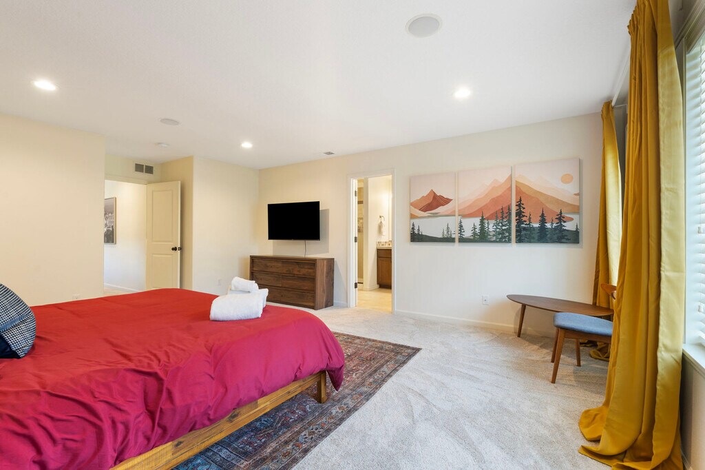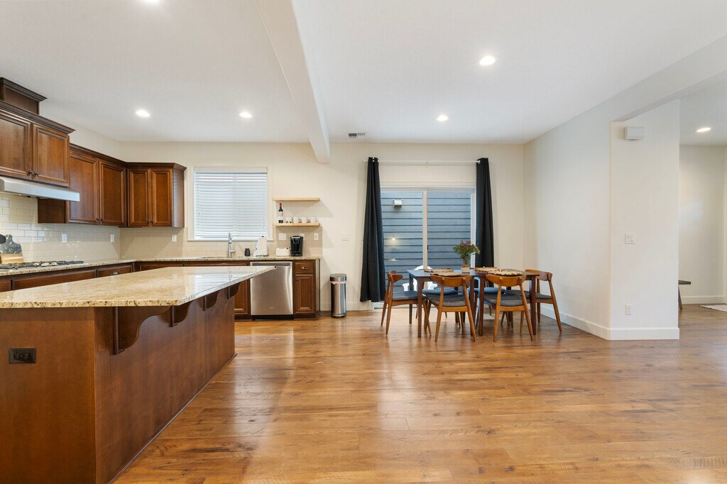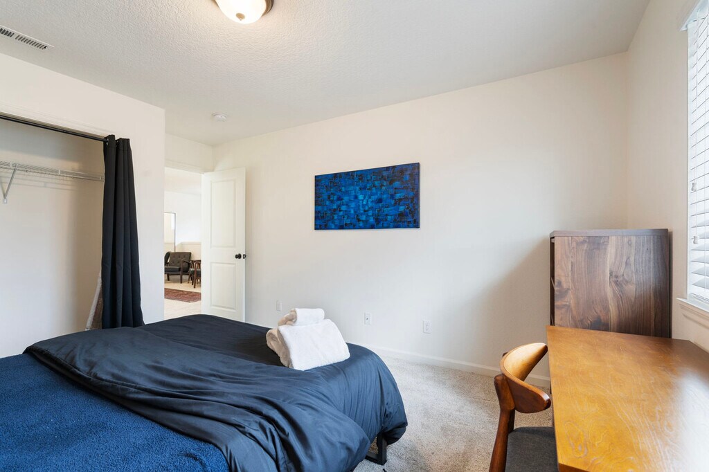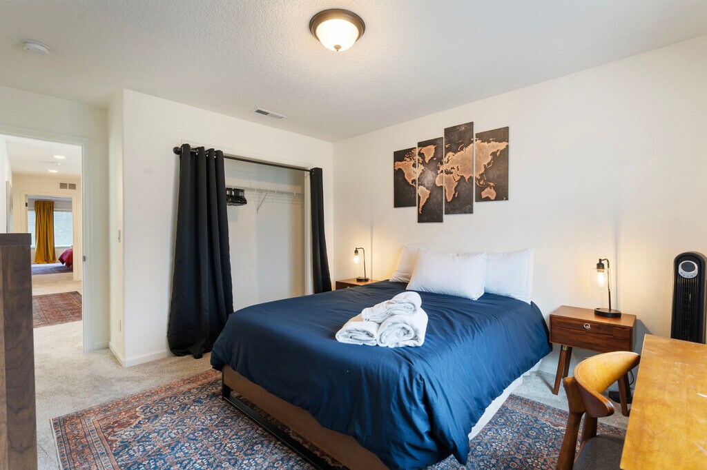 Feel at home in this 3-bedroom, family-friendly home in Hillsboro, Oregon. Perfect for professionals or vacationing families, this home offers a blend of functionality and ease. Upon entering this modern and spacious 2-story home, the open design of the living, dining, and kitchen area greets you, fostering a sense of community and instant relaxation. The hub of the home is equipped with a fully equipped kitchen featuring a Keurig coffee machine and modern appliances, making gatherings easy and pleasurable. Upstairs, each of the three bedrooms has its uniqueness, with the master suite marked by a luxurious bath and walk-in closet. Additional living space is found in a charming loft, perfect for some quiet reading time or simply unwinding with a good movie. This property exceeds in its amenities, from an indoor fireplace to keep you cozy during the winter months to cooling air conditioning for the warmer days, always ensuring your comfort. With a convenient half bath, high-speed Wi-Fi, a dedicated workspace, child-friendly spaces and equipment such as a high chair, and an in-unit washer and dryer, this home has everything you need. Safety is also a priority, with smoke and carbon monoxide detectors, a fire extinguisher, and a smart lock system. Enjoy the patio/balcony and garden or backyard. Free on-premises and street parking are available. Set in the heart of Hillsboro, this home is in a safe, family-friendly area with an abundance of natural beauty. Enjoy easy access to parks and outdoor activities. Hillsboro's vibrant cultural scene, dining, and shopping are minutes away. Business travelers will appreciate the proximity to Intel, located in the city's dynamic 'Silicon Forest'. Local attractions are within easy reach, like the serene settings of Rood Bridge Park or the adventurous trails at Noble Woods Park. The location offers convenient transportation options, whether driving, using public transport, or walking. Explore Hillsboro's attractions easily, making the most of your stay, whether here for leisure or business. Smoking is not allowed in the property, and while pets are allowed, your support in maintaining the home's cleanliness is appreciated. Includes a laptop-friendly environment. [SI]