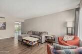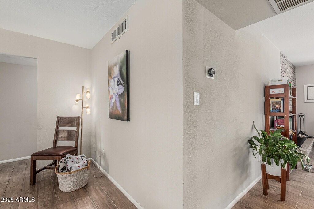 Across the street from Cactus Park,this home embodies Phoenix charm with the perfect blend of suburban tranquility and urban convenience. Close to parks,shopping,and dining,it offers a lifestyle of ease and accessibility. Stepping inside,you're welcomed by a cozy living room with stylish wood-look tile flooring that flows throughout. To your left,a hallway leads to two guest rooms,a guest bath,and a primary suite with an en suite. Ahead,the dining room with a fireplace creates a warm ambiance,while to your right,the remodeled kitchen shines with granite counter tops,a stainless steel hood,and a gas range. Beyond the kitchen,the laundry area and bonus roomconverted from a carportadd extra versatility. Outside,a large patio,sparkling pool,and artificial turf! Welcome Home