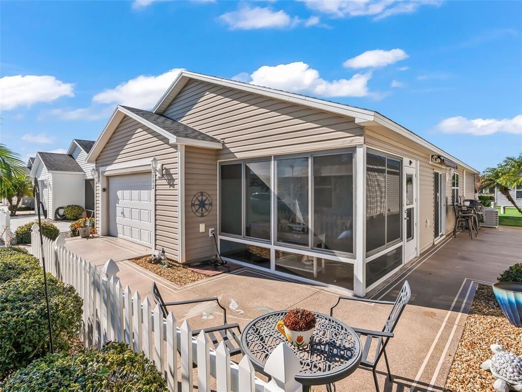 Available April 1,2025,this beautifully appointed,turn-key furnished patio villa is located in the desirable Village of Hillsborough in The Villages,perfectly positioned between Downtown Sumter Landing and Brownwood Paddock Square. This exceptional location provides easy access to dining,shopping,golf,recreation centers,and the vibrant nightly entertainment that defines The Villages lifestyle. The home features a fresh,inviting interior color palette that is beautifully complemented by abundant natural light. High vaulted ceilings enhance the open and airy feel of the main living area,which showcases attractive luxury vinyl plank flooring. The kitchen is thoughtfully designed with stainless steel appliances,ample cabinetry,and a large pantry,ideal for both everyday living and entertaining. An inside laundry room adds convenience and functionality. This well-designed villa offers two bedrooms and two full bathrooms. The primary suite is a private retreat featuring a queen-size bed,a huge walk-in closet,and a dedicated dressing area,along with a private space that includes a shower and commode. The guest bedroom is furnished with two single beds,making it perfect for visiting friends or family,while the guest bathroom offers a tub and shower combination for added comfort. A highlight of this home is the front covered and enclosed Florida room,providing additional living space,as well as a large patio,where you can sit outside,relax,and enjoy the beautiful Florida weather. Fully furnished and move-in ready,the home also includes a golf cart,making it easy to explore nearby amenities such as the Hillsborough Community Pool,recreation centers,grocery stores,medical offices,and the town squares. The price listed reflects a full-year rental. Please call for seasonal pricing and availability. We are happy to customize your vacation to suit your needs. Come enjoy the Florida life in this exceptional home and start living your dreams. MLS# G5106108