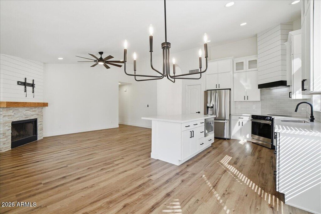 Beautifully updated home in the highly sought‑after Cottonwood Ranch community. Property features new fixtures and flooring throughout. Chef's kitchen includes custom hood,custom cabinetry,large island,soft water system and reverse osmosis. Both bathrooms offer tiled showers and new cabinetry. Spacious floor plan with multiple living areas and five bedrooms; one bedroom includes double doors and is ideal for an office or den. Exterior highlights include a full covered patio spanning the back of the home,concrete side‑yard slab,and RV gate. Located in the Kyrene School District and close to shopping,schools,freeway access,and community amenities. A must‑see rental property.