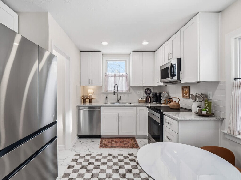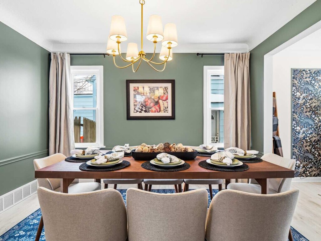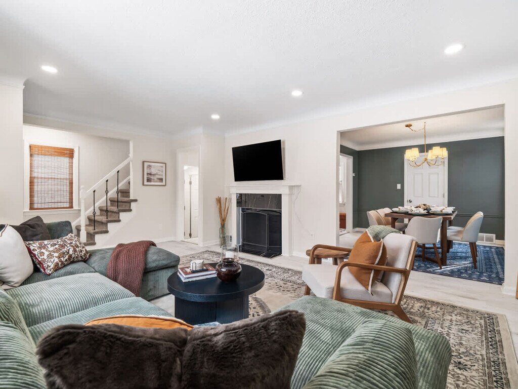 The advertised rate of $5,351/month is the lowest available price, based on a 1 month(s) stay with a move-in date of April 12, 2026. Rates vary depending on the duration of stay, season, and other parameters. For exact pricing and additional pricing components, please visit our website and enter your desired move-in and move-out dates. The rate is applicable when billed upfront; it can be higher if billed in multiple payments. Welcome to your University Heights retreat, where you can feel right at home in this thoughtfully designed home. This property offers 3 bedrooms and 4 beds. The large living room invites you to relax on a cozy sectional while enjoying the Smart TV. The dining room seats up to 8, perfect for shared meals. The fully remodeled kitchen is fully stocked with all the essentials you need to cook with ease, plus a cozy nook with extra seating. The basement game room is a guest favorite, featuring a pool table, record player, plenty of board games, and a Smart TV. A washer and dryer are also available for added convenience during longer stays. Up to 2 dogs are welcome with a flat fee of $125. Requests for a 3rd or 4th dog are subject to approval and an additional $100 fee. This home has a great location next to a park with a playground and convenient access to University Circle, shops, restaurants, University Hospital, Case Western, Little Italy, and more. Excessive noise may result in a $500 fine due to past neighbor complaints. Smoking inside the house is prohibited and will result in a $500 fine. Pets must be disclosed and approved in writing before your stay; undisclosed pets will result in a $150 fee and may lead to cancellation without refund. No cats are allowed. Quiet hours are from 10 PM to 8 AM. Absolutely no parties are allowed. If an unauthorized gathering happens, your reservation will be terminated on the spot and you’ll be required to vacate immediately without a refund. Any cleanup related to a party or gathering, no matter the size, will also incur additional cleaning fees and labor/material fees for any damages that were caused. Avoid confetti, glitter, water beads, balloons, or tiny plastic/glass/metal pieces. Enter through the mudroom, where you’ll also find a convenient office space. Start your mornings at the coffee bar area, fully set-up with coffee, sugar, creamer, and flavored syrups to suit every taste. Includes a half bathroom on this floor. [SI]