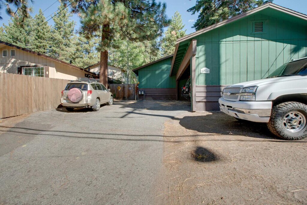 The advertised rate of $3,878/month is the lowest available price, based on a 1 month(s) stay with a move-in date of April 15, 2026. Rates vary depending on the duration of stay, season, and other parameters. For exact pricing and additional pricing components, please visit our website and enter your desired move-in and move-out dates. The rate is applicable when billed upfront; it can be higher if billed in multiple payments. Feel at home in this cozy 2-bedroom, 1-bath vacation rental in South Lake Tahoe. This single-story duplex requires 3 steps for access. This home features a private patio, a flat-screen TV with streaming capabilities, a DVD player, DVDs, and an electric fireplace. The kitchen is equipped with a dining table, electric stove/oven, drip coffee maker, French press, kettle, coffee grinder, microwave, toaster, blender, cooking basics, dishware and flatware. Additional amenities include a wall heater (opens to kitchen and living room), washer/dryer, laundry detergent, linens/towels, complimentary toiletries, and free Wi-Fi. Parking is available in the driveway for 2 vehicles. Embrace lake living with a prime location less than a mile from beaches and boat rentals. Explore trails at Fallen Leaf Lake, check out zip-lining at Heavenly Mountain, or try your luck at nearby casinos. The Edgewood Tahoe Golf Course is just 2 miles away. Quiet hours are observed from 10:00 PM to 8:00 AM. There is a long-term tenant on-site in the front duplex unit who may be present during your stay. Smoking, pets, events, parties, and large gatherings are not allowed. Guests must be at least 25 years old to book. Area rangers strictly enforce all Vacation Rental ordinances (parking, noise violations, camping, etc.). If a citation is received, the guest will be responsible for paying both guest and owner citations, up to $2,000. To avoid citations, follow all community rules as outlined in the Welcome Book and observe quiet hours between 10:00 pm and 8:00 am. You must only park in designated spaces (garage, paved driveway, carport or parking lot). Vehicles are not allowed to park on the street. Camping on the property is strictly prohibited. - This single-story duplex requires 3 steps for access - The property does not have air conditioning - A long-term tenant lives on-site in the front duplex unit and may be present during your stay [SI]