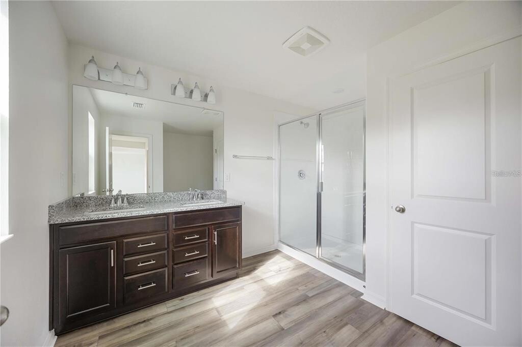 Welcome to your BRAND NEW dream home in the desirable River Run community! This brand-new 5-bedroom,3-bathroom home offers over 3,000 sq. ft. of thoughtfully designed living space with modern upgrades throughout. Step inside and you’ll find a flexible layout with a first-floor bedroom and full bathroom—perfect for guests. The heart of the home features an open-concept living area with a spacious great room,dining space,and a show-stopping kitchen. The kitchen includes a large island with bar seating,quartz countertops,stainless steel appliances,walk-in pantry,and light wood cabinetry accented by a marble tile backsplash. An appliance bar and 42-inch upper cabinets with crown molding add extra convenience and style. Upstairs,a large loft separates the primary suite from the secondary bedrooms,offering privacy and functionality. The primary retreat boasts an oversized walk-in closet,ceiling fan,dual-sink vanity with granite countertops,a glass-enclosed shower,and a relaxing garden tub. Each secondary bedroom includes its own walk-in closet,providing ample storage. Enjoy upgraded finishes throughout,including luxury vinyl plank flooring in main living spaces,tile in wet areas,and cozy carpet in the bedrooms. Step outside to your panoramic screened porch with unobstructed preserve views—ideal for relaxing or entertaining. The garage features a coated floor for durability and style. Nestled in a peaceful setting yet close to everything—this home offers quick access to Hillsborough River State Park,US-301,I-75,State Road 56,the Tampa Premium Outlets,and Wesley Chapel/Zephyrhills medical hubs. MLS# TB8422505
