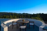 Perched atop Diamond Mountain on 13 private acres, this reimagined coastal modern residence offers exceptional privacy and panoramic views stretching across Calistoga's vineyards to Mount St. Helena and the Palisades. Recently redesigned, the four-level home spans approximately 4,622 sq ft, with soaring ceilings, wide-plank oak floors, and a dramatic open living space anchored by a fireplace and temperature-controlled wine gallery. The kitchen is both sculptural and functional, appointed with a quartz waterfall island and Wolf, Sub-Zero, and Bosch appliances. The primary suite opens to a private balcony and features a spa-like bath and custom dressing room. Additional spaces include a media lounge with wet bar and large-format screen, along with a top-level guest suite positioned for sweeping, elevated views. Outdoor living is integral an architectural round pool and spa*, multiple dining terraces, and a fully equipped outdoor kitchen, all set within a landscape defined by scale, exposure, and uninterrupted sightlines. *Due to the open pool and unguarded edges, the property is best suited for tenants comfortable with a hillside environment. Not recommended for young children. MLS#326024337