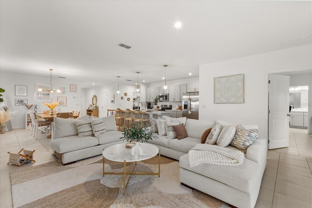 NO CARPET. NO CDD. NO REAR NEIGHBORS. Furniture is negotiable and may be available for purchase separately,subject to agre.ement. Stunning 4-bedroom,3-bath,2,106 sq ft home in Southern Pines,sitting on a premium conservation lot with full privacy and beautiful nature views. Loaded with upgrades,including designer light fixtures,luxury flooring throughout,a screened-in lanai,and gutters installed. High ceilings and 8-ft doors elevate the open-concept layout. Modern kitchen with island,quartz countertops,stainless steel appliances,and walk-in pantry. Spacious primary suite with conservation views,dual sinks,walk-in shower,and walk-in closet. Oversized 2-car garage perfect for a home gym setup. Community offers a pool,playgrounds,and low HOA. Prime location near Lake Nona,Medical City,Turnpike,Hwy 192,top schools,shopping,dining,and Orlando International Airport. Move-in ready and a rare opportunity in a fast-growing area. MLS# S5140842