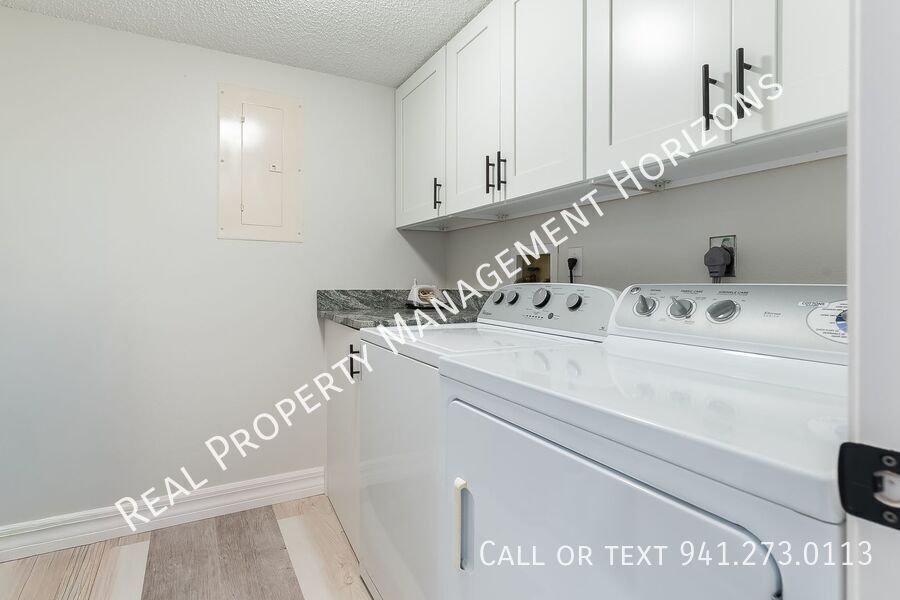 Real Property Management Horizons are delighted to offer for rent this stunning 2-bedroom, 2-bathroom unit, nestled in the well-maintained condo community of Pinebrook. Embrace modern living in an unparalleled location with this stunning, fully furnished remodel of a ground-floor - Doral floor plan - unit offering an inviting and spacious layout, with the additional luxury of a larger living room and extended lanai for soaking in those sun-soaked afternoons. The newly updated kitchen leaves no detail untouched with soft-close cabinets, new appliances, gorgeous granite counters, and new fixtures. Distinctive touches, such as the shiplap wall and floating shelving, create unique charm and character. The open concept design offers seamless transitions between rooms, flowing effortlessly from the high-spec kitchen to the expansive dining and living room spaces, crowned with elegant crown molding. Essential utilities are taken care of with a new water heater and 3-year-old A/C unit, ensuring comfort and efficiency. The master bathroom steals the show with its double vanity sinks, new cabinets and granite countertops, and luxury tiled shower, creating a spa-like retreat. Furthermore, the Pinebrook community offers amenities such as a private heated pool, clubhouse, gym, billiards room, social room, and tennis courts. Just steps away from a myriad of shopping, dining, and medical facilities and close to the stunning beaches of Anna Maria Island, this home offers a unique blend of comfort, convenience, and luxury. An internal inspection of the accommodation on offer is highly recommended The property is offered furnished Electricity, Water, Trash, Basic Wi-Fi & Cable are all included in the rent Lease minimum of three months and maximum of six months & 1 day NB - For Leases of less than six months and 1 day Tenants will be liable for 'Tourist Taxes' equivalent to 13% on top of the monthly rental. Tenants will be liable for a Set-Up Fee of $200.00 in addition to the Application Fees HOA Application Fees may apply. Please visit our website for a brief video tour. Basic Cable & Wi Fi Bills Included Community Swimming Pool & Tennis Courts Electricity Extra Storage Cupboard Fully Equipped Modern Kitchen Fully Furnished Laundry Room In Unit One Allocated Parking Space Open Plan Living Incorporating Kitchen Dining Breakfast Bar & Living Room Screened Lanai/Patio Two Spacious Double Bedrooms Views Over Golf Course Water & Trash