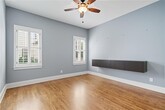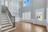 Welcome to this stunning home where thoughtful design meets everyday luxury. Step into the impressive two-story foyer,featuring a grand staircase,soaring ceilings,a modern accent wall,and gleaming hardwood floors that set the tone for the rest of the home. The open-concept main level flows seamlessly from the fireside family room,with its striking stone fireplace and wall of windows,to the chef's kitchen,complete with abundant cabinetry,sleek countertops,stainless steel appliances,double ovens,walk-in pantry,and a spacious center island perfect for gathering. Just off the kitchen,a banquet-sized dining room offers a beautiful space for hosting. Also on the main level: a full guest suite with an adjacent bath,plus access to a covered patio overlooking the private backyard. Upstairs,the luxurious primary suite features dual walk-in closets and a spa-like bath with double vanities. Four additional oversized bedrooms each have their own private baths,offering space and privacy for everyone. Don't miss the rare,fully finished third floor,currently used as a home theater (all theater equipment stays!),with an additional bedroom and full bath. The large unfinished basement offers even more potential and includes a home gym setup,which remains with the property. Outside,enjoy your own backyard retreat with a custom stone firepit,hot tub,and outdoor kitchen,perfect for relaxing or entertaining year-round. Located in the sought-after Windermere community,with access to top-tier amenities including two resort-style pools,playgrounds,tennis & pickleball courts,and a fitness center. All just minutes from parks,dining,and top-rated Forsyth County schools.