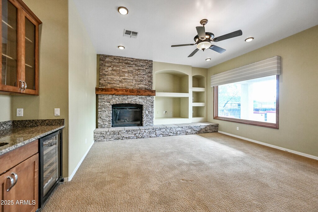 This fantastic property is tucked away from the main street and sits on 1.18 acres. It features an open floor plan,3 bedrooms plus DEN,3 bathrooms and a 3 car garage. You will find travertine floor throughout most of the home,tall ceilings,berber carpet,stack stone gas fireplace,custom kitchen cabinets with granite counter tops and also a beautiful wet bar with sink/faucet and built in wine cooler. This home also features an RV gate and a detached shed for storage. This home has it all!! It's truly a must see! Tour today!