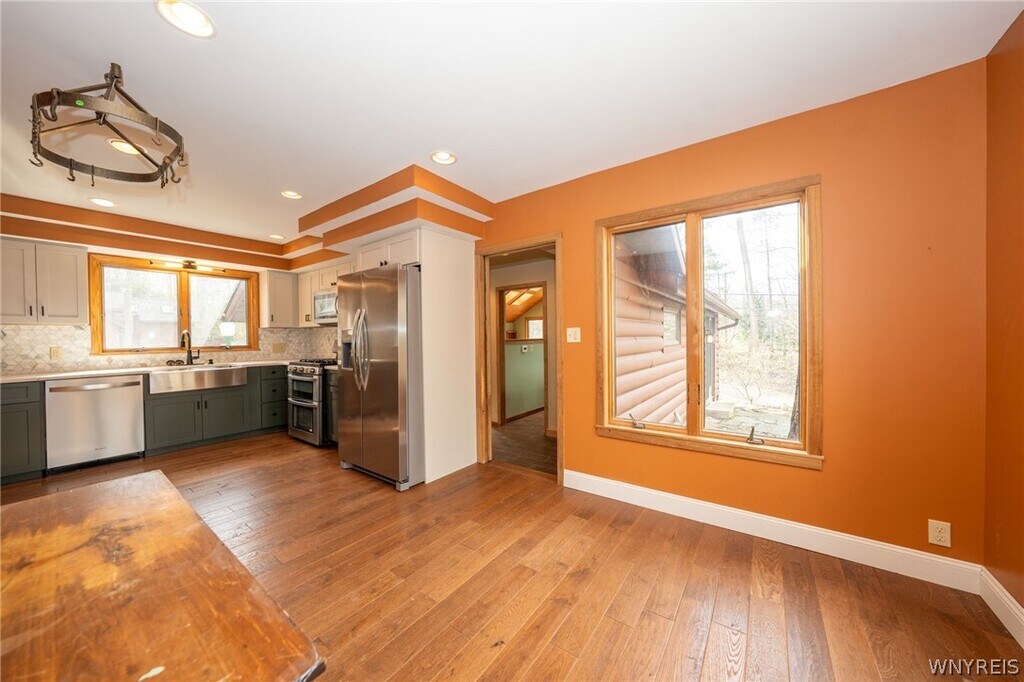Welcome to a truly one-of-a-kind lease opportunity in the heart of Hamburg. Tucked away in a breathtaking,wooded setting overlooking scenic Eighteen Mile Creek,this 3-bedroom,2 full bath home offers a rare blend of privacy,nature,and everyday comfort. Step inside and experience a warm,luxury cabin-like atmosphere filled with character and charm. The inviting layout features spacious living areas with tons of natural light throughout,a well-appointed kitchen,and generously sized bedrooms—perfect for relaxing or entertaining and just waiting for someone to make it their own. What truly sets this home apart is the outdoor living space. Enjoy a stunning multi-tier deck that immerses you in nature,providing the perfect backdrop for morning coffee,evening unwinding,or hosting guests—all while taking in the peaceful creek views and a serene,wooded landscape. If you’ve been searching for a rental that feels like a retreat while still being conveniently located near shopping,dining,and major routes,this is it. Experience the best of both worlds,privacy and convenience,just outside of the Village of Hamburg and just minutes from everything that Western New York has to offer.