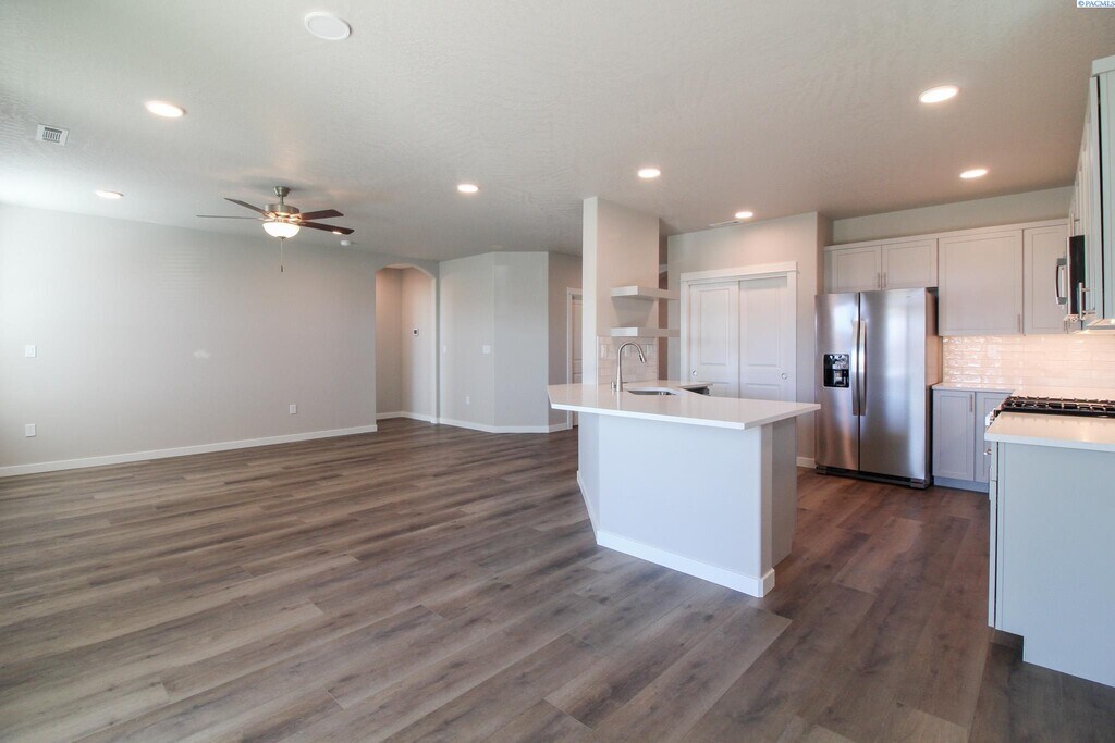 MLS# 288338 We do not accept 3rd party applications or viewing requests. 3 bed, 2 bath house, 1574 sqft Richland Home, located in Goose Ridge, close to freeway & Queensgate shopping, new CostcoInterior:* Completely brand new construction* Bright & open main living space* Hard surface flooring* Stainless steel appliances in the kitchen (fridge installed after photos), open shelving, gas range and eat-at bar* Primary bedroom has a walk-in closet, and attached bath with a dual vanityExterior:* 2-car garage* Fully fenced yard - installed after photos were takenAdditional Lease Information:* 6 month lease term to start, annual renewals* Dog friendly upon approval & feeDeposit & Fees Include:$1893 Refundable Deposit$367 Inspection Fee$190 Carpet Care Fee (used at move out)