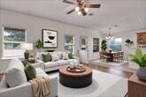 Nestled in the heart of Round Rock, Texas, at 3761 Rod Carew Dr, 78665, this inviting single-family residence offers comfort, style, and modern convenience. The living room features a soaring vaulted ceiling and abundant natural light, creating a warm, open atmosphere perfect for gatherings. The kitchen impresses with shaker cabinets, a stylish backsplash, and a welcoming peninsula ideal for conversation and culinary creativity. The primary suite includes an ensuite bathroom with a double vanity, a walk-in shower, and a spacious walk-in closet for added privacy and ease. A brand-new air conditioning system installed in mid-2024 ensures year-round comfort and energy efficiency, while the fenced backyard and patio provide the perfect outdoor retreat. Complete with a laundry room and a two-car garage, this Round Rock home beautifully blends everyday functionality with timeless charm.
