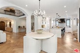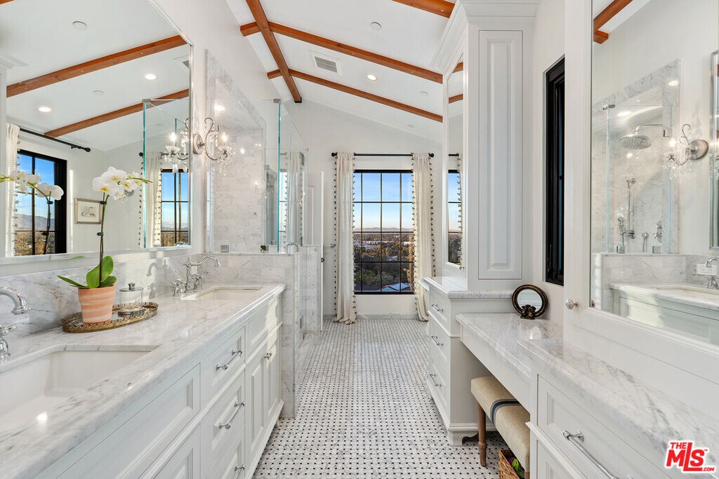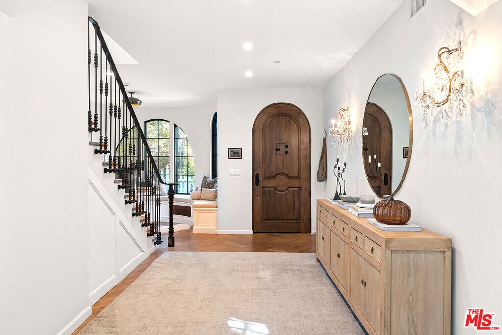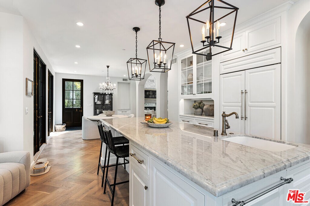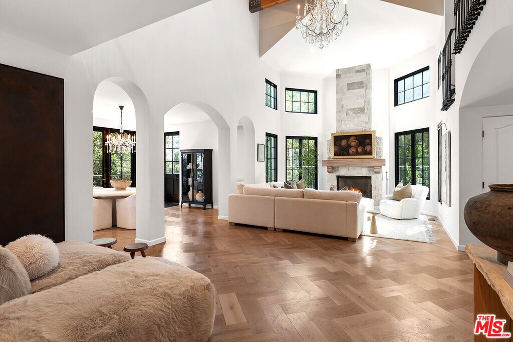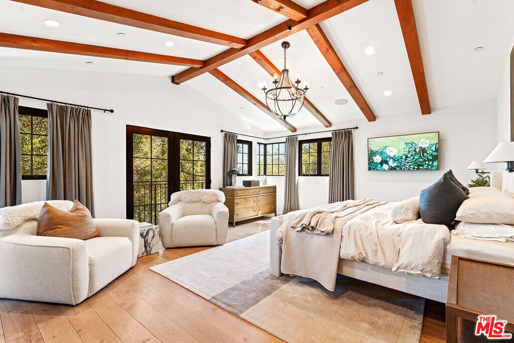 Welcome to this exquisite 2018 French Country home located in the heart of highly sought after Studio City. Designed with exceptional craftsmanship, the home features an open floor plan with sweeping city and mountain views from nearly every room. High vaulted ceilings soar up to 25 feet in the grand great room, highlighted by exposed beams and expansive windows that flood the space with natural light. The great room flows seamlessly into the chef's kitchen, outfitted with a La Cornue range, Wolf double oven, Subzero fridge and freezer, plus an additional refrigerator and freezer built into the oversized island, ideal for entertaining. The home offers four spacious bedrooms with vaulted ceilings, along with an optional fifth bedroom suite downstairs featuring a private entrance and ensuite bath, perfect for guests or a recreation room.The outdoor space is a rare hillside offering with a large grassy backyard, brand new saltwater pool and spa, fountain, mature trees, and lush landscaping. Three balconies include a generous entertaining deck with both east and west-facing views. Additional features include French oak hardwood floors, crystal chandeliers, Carrara marble finishes, and a spacious basement of approximately 1,000 square feet, not included in the listed square footage, workspace use. Located south of Ventura Blvd in the coveted Carpenter School District, the home is close to dining, shopping, and popular hiking trails. The renter is responsible for all utilities, pool and gardener services, fountain maintenance, and alarm monitoring and response. Renter's insurance is required. As an added incentive, a $1,000 monthly rent concession is offered for the months of February through May with a minimum 16-month lease term. MLS# 26639293