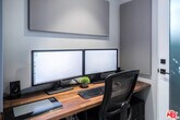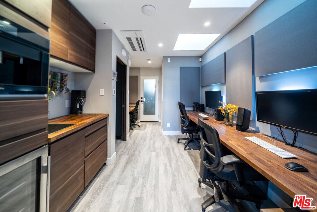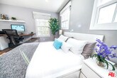Fully furnished sanctuary compound available for 2-month to 11-month lease. Great Westside location, moments from Abbot Kinney and Venice Beach. Sophisticated single-family residence with detached ADU/office/recording studio offering an ideal live/work environment. Sun-filled interiors blend California and European modern design with seamless indoor-outdoor living. Folding glass doors open to a private backyard with a shaded deck, a fire pit, a BBQ, and a dining area. Gourmet kitchen with premium appliances. Spa-style baths. Skylights. Smart-home automation. Enterprise-grade gigabit fiber internet and dedicated workstations throughout. Quiet, tree-lined street with ample street parking. Separate entrances; lease together or separately. Main house $12,500/month, ADU/Office/Recording studio $3,000/mo. MLS# 26636175