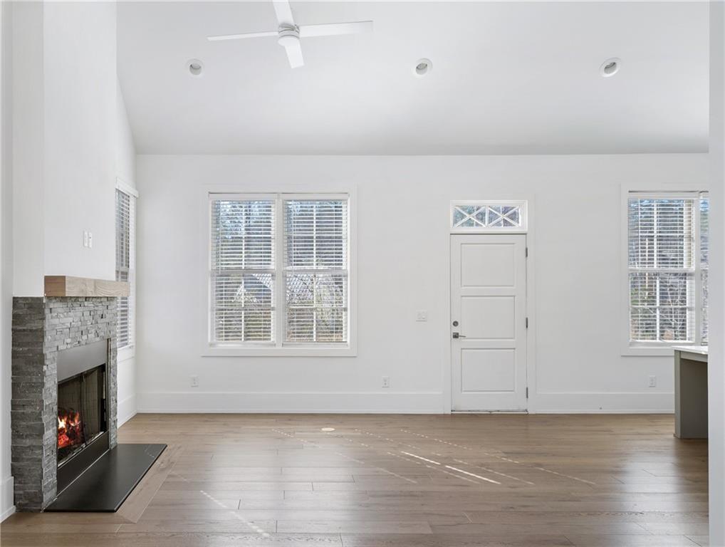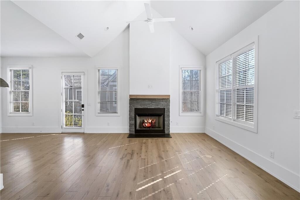 377 Anders N. of Mado Hamlet in Serenbe was planned for ease of living and invitation to the outdoors,enjoying expansive views of Anders Garden and the beautiful woods of Serenbe. In this thoughtful,professionally designed single-story home,vaulted ceilings in the open kitchen and living/dining area with gas-starter fireplace will inspire. Hardwood floors and classic tile plus upgraded fixtures and stone fireplace surround are elegant yet durable. Along with the southeastern exposure,tall ceilings and large windows throughout create a spacious,airy and bright environment in this 2 bedroom,2 full bath home. From your front door,pick medicinal herbs and flowers or meet neighbors at the bocce court in the community maintained gardens,or follow the path to take a long walk through 16 miles of wooded trails. You will also be only steps away from the gym,spa,and many fine retail and dining options in the walkable Serenbe community. Includes off street parking. Come join the community of Serenbe and enjoy the lifestyle!