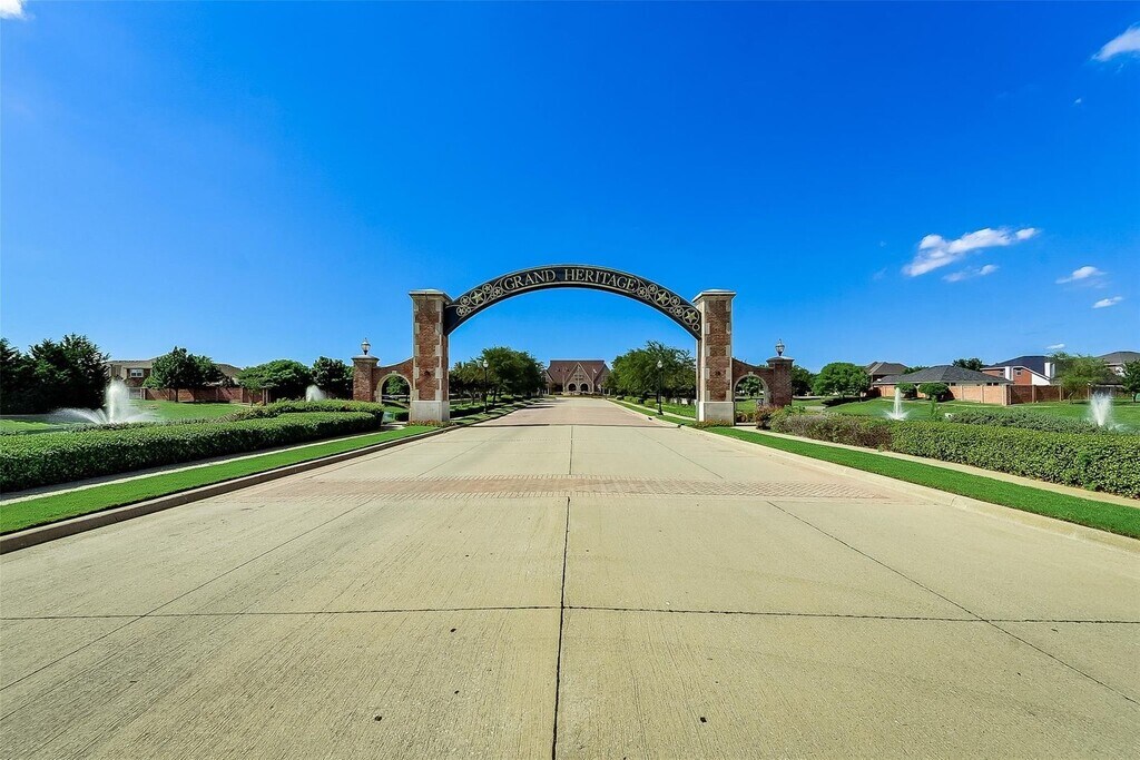 Beautiful 2 story custom duplex located in Grand Heritage. 3 bedrooms, 2.5 bathrooms, 2 car front entry garage, featuring an open floor plan, ceramic wood look flooring in living, dining and kitchen. Designer colors, decorative lighting, tiled kitchen counters, island and back splash, separate utility room, full size washer & dryer connections. Private over sized fenced back yard, sprinkler system and covered patio. Community features clubhouse, pool, splash park, fitness center, business center, jogging paths, playgrounds, and much more! Owner pays HOA.