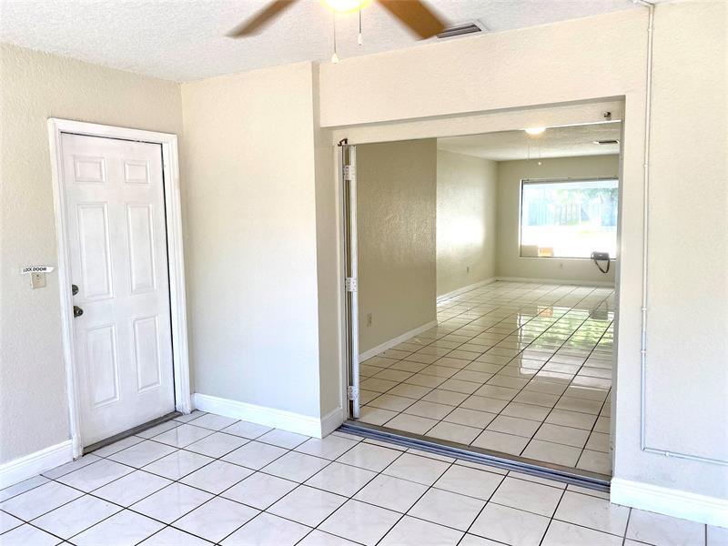 Spacious 4 Bedroom, 2 Bathroom Home with Large Fenced Yard – Pet Friendly! This beautiful 4 bed, 2 bath home won't last long! Featuring all tile flooring throughout and a split floor plan, this home offers both comfort and functionality. The large open-concept living and dining area is perfect for entertaining, and the kitchen includes a convenient breakfast bar. Ceiling fan in each bedroom. Additional features include: Laundry room off kitchen with door leading directly to the backyard Garage converted into a versatile space – perfect as a workshop, indoor storage, playroom, or additional bedroom(4th bedroom) Spacious, fenced-in backyard with paver patio for relaxing or entertaining. New paint October 2025, new HVAC 2025, ready for move in!