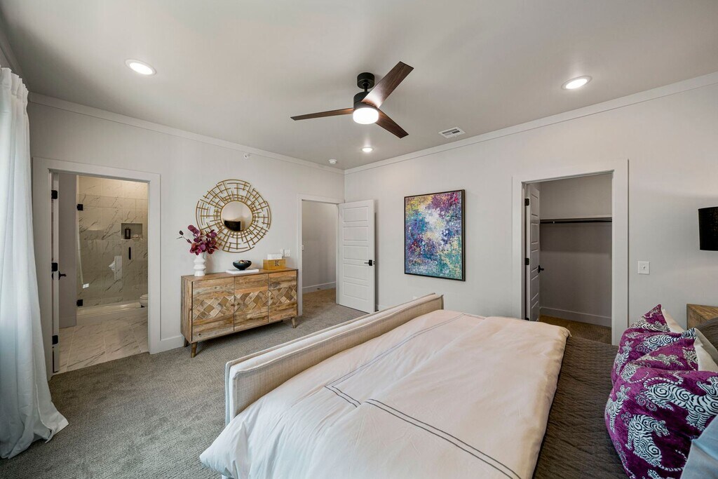 Discover modern elegance in the newly constructed Edgewater Condominiums, a boutique community featuring 18 luxurious units with 9 still available for purchase. The main level offers an open-concept design with a spacious living area, a stunning fireplace, and a chef's kitchen featuring quartz countertops, professional stainless steel appliances, a prep sink, and island seating. A versatile office or dining nook and a stylish powder bath complete the space. Upstairs, you'll find two private master suites with luxe bathrooms, large walk-in closets, and a conveniently located laundry room. The ground level includes a spacious two-car garage with ample storage. These condos boast tall ceilings, abundant natural light, and exceptional storage throughout. Located directly across from Riverside, Edgewater Condominiums are within walking distance to Brookside, The Gathering Place, and scenic trails, offering a lifestyle perfect for work, recreation, and entertainment. Whether you're seeking a full-time residence or a lock-and-leave option for travel, these condos are designed to meet your needs. Don't miss this rare opportunity!
