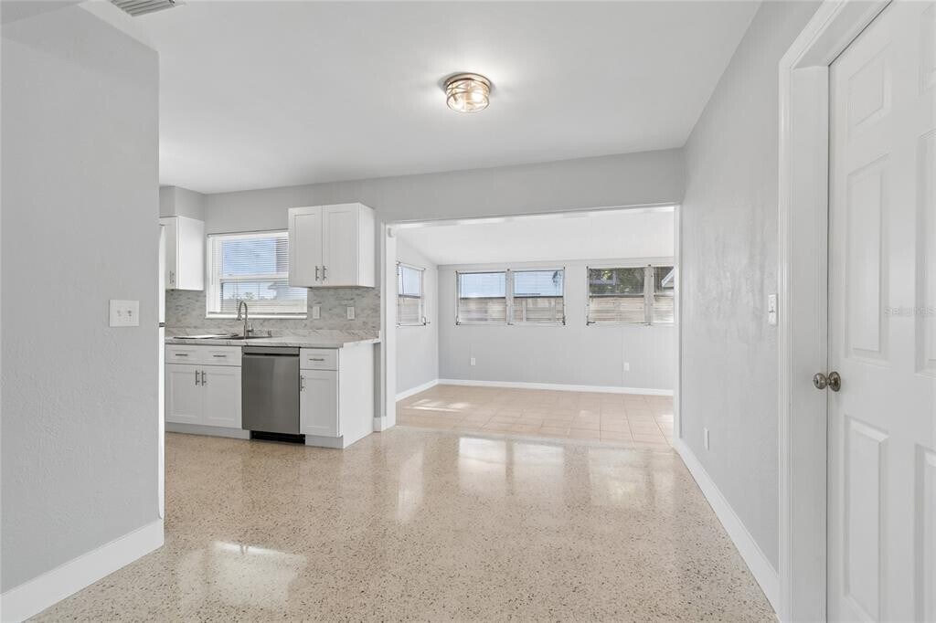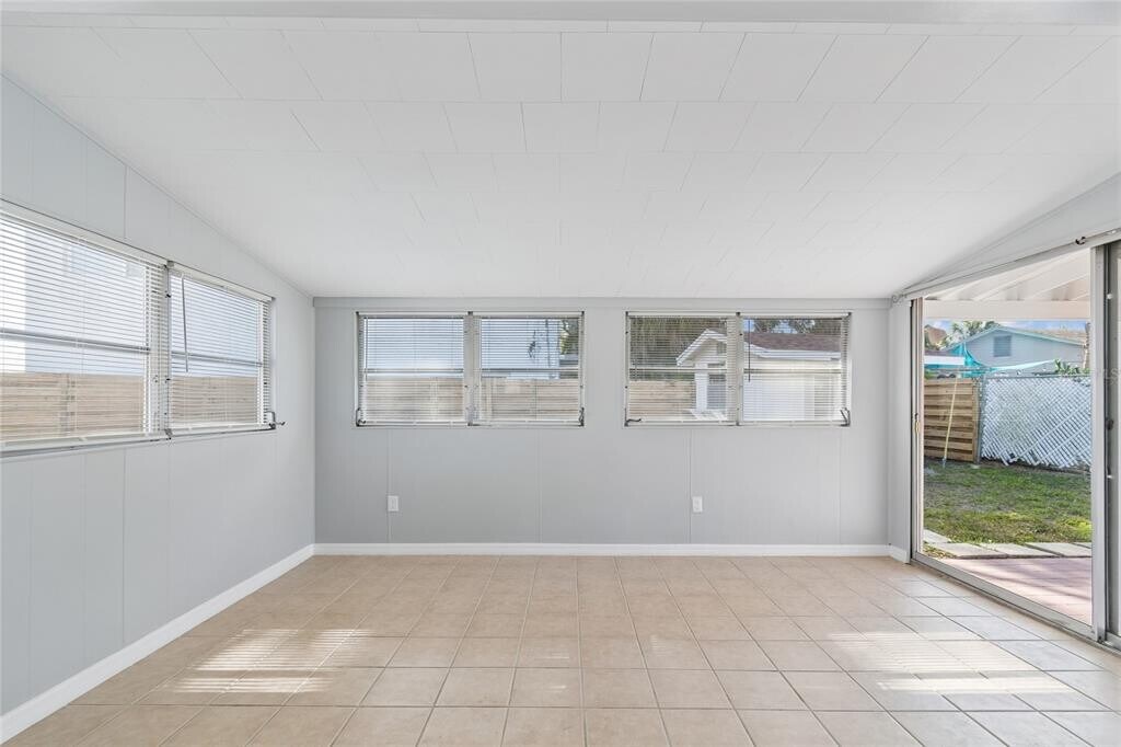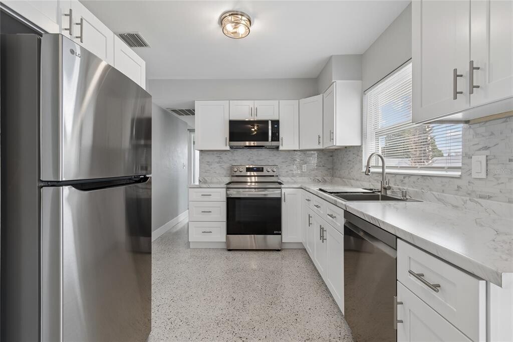 2 BEDROOM,1 BATHROOM HOME with a ONE CAR GARAGE,ideally located! Just minutes from Tyrone Square Mall,popular restaurants,everyday shopping and the GULF BEACHES! This charming home offers excellent curb appeal and adds functionality with both a front driveway leading to the garage and an additional side driveway on the east side of the property. Step inside to a bright and spacious living and dining room combination,creating a comfortable and versatile space for both relaxing and entertaining. Throughout the home,you’ll find stunning POLISHED TERRAZZO FLOORING,adding timeless character,durability,and easy maintenance. The fully remodeled kitchen is a standout feature,designed with modern aesthetic and equipped with BRAND NEW STAINLESS STEEL AAPLIANCES,including a glass-top range,refrigerator,and dishwasher. Granite countertops,double porcelain sinks,and updated finishes make this kitchen both stylish and functional for everyday living. Both bedrooms are generously sized and offer ample closet space. The bathroom is tastefully finished with tile and features a tub and shower combination,offering both comfort and practicality. Just off the main living area,the large FLORIDA ROOM provides additional living space filled with natural light from expansive windows and sliding glass doors. This inviting area flows seamlessly out to a tiled back porch—perfect for enjoying Florida evenings or hosting guests. Additional features include a one-car garage with remote access and washer/dryer hookups,providing added convenience. The fully fenced backyard offers privacy and includes a storage shed available for tenant use. Small pets are welcome with a $350 non-refundable pet fee. Tenants are required to carry renters’ insurance covering personal property as well as $300,000 in liability,with the owner listed as additionally insured. MLS# TB8491284