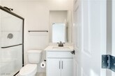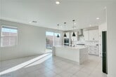 Barely lived-in home in Henderson with Strip (Sphere) and mountain views. This 5-bedroom, 3.5-bathroom residence is on a premium lot, providing 16 and 18 feet of space on each side, and features an open floor plan. The backyard is designed for low maintenance, featuring pavers and artificial turf. Inside, the primary bedroom includes custom California Closets, alongside a custom home office and custom laundry room cabinets. The first floor has 9 ft ceilings and a chef's kitchen, which is equipped with a quartz waterfall island, a custom white refrigerator, and a large pantry. Further enhancing the home's appeal are an Ecobee smart thermostat with 3 zones, a loft, a 2-car garage with a smart opener, a whole-house water softener, and a reverse osmosis water filtration system in the kitchen. Located in the Inspirada Community, residents have access to numerous amenities such as parks, pools, playgrounds, pickleball and tennis courts, and trails. A new park, Sentiero Park, is close by.