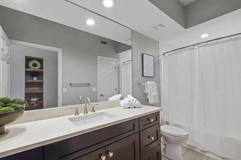 Beautifully updated 2-bedroom, 2-bath condo located in Brookhaven’s desirable Peachtree Place community. This ground-floor end unit offers convenient access to the pool, fitness center, clubhouse, and patio garden area. Stunning new hardwood floors run throughout, guiding you from the arched foyer entry into the open-concept family and dining spaces.The fully renovated kitchen boasts brand-new cabinetry, stone countertops and backsplash, stainless steel appliances, updated lighting, and custom pantry shelving. The owner’s suite has been thoughtfully redesigned with a refreshed bath featuring a new tub and shower, tile, cabinetry, countertops, toilet, and built-in shelving, along with a walk-in closet complete with new hardwood shelving. The guest bath has also been renovated, and the closet system has been recently replaced.Major systems were updated in 2016, including the AC, furnace, and water heater, and a Nest smart thermostat was installed for added efficiency.